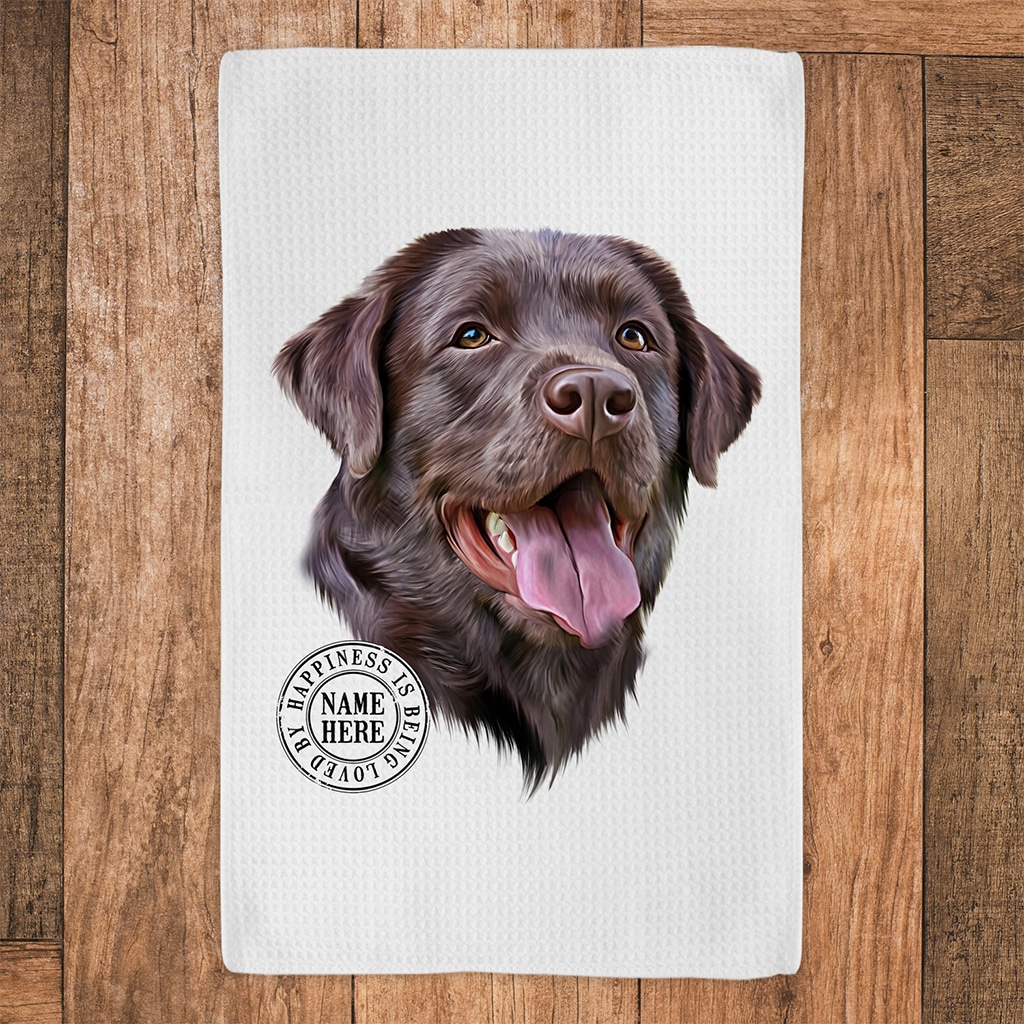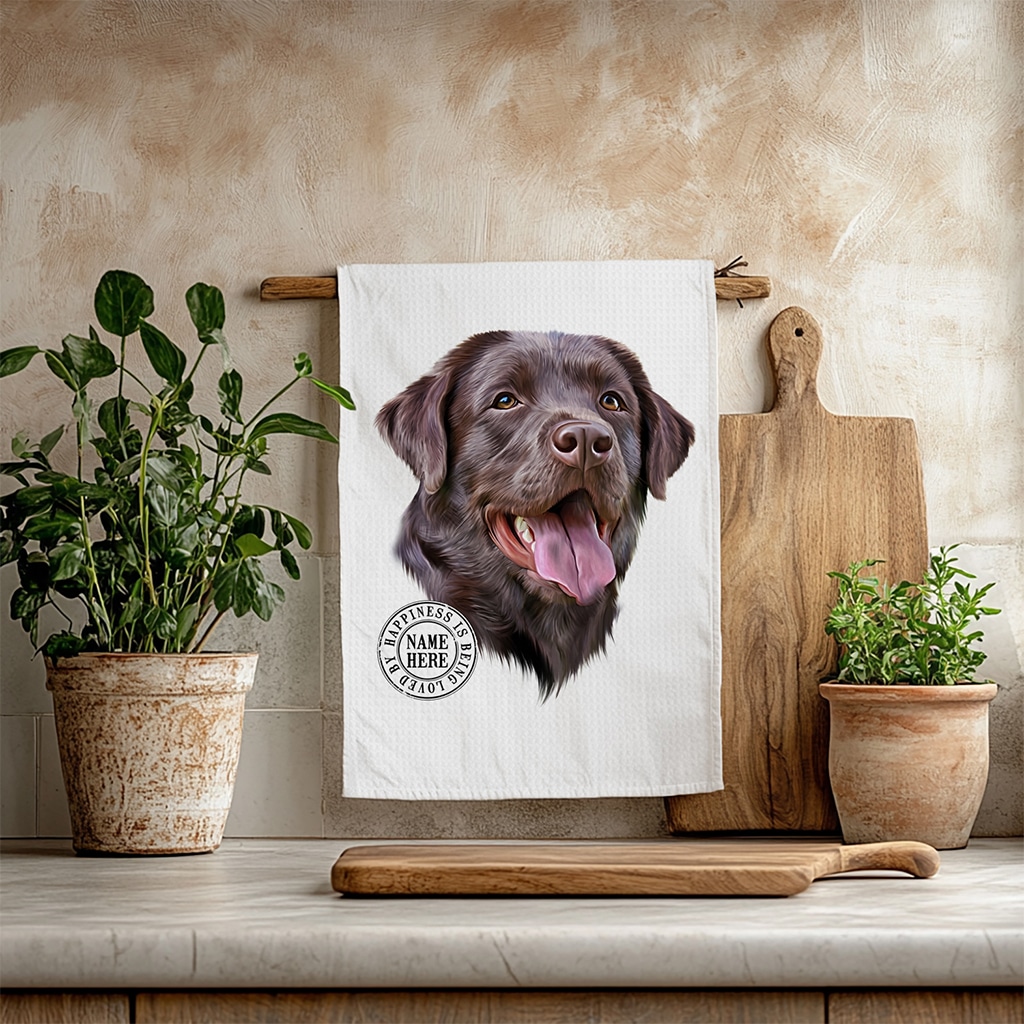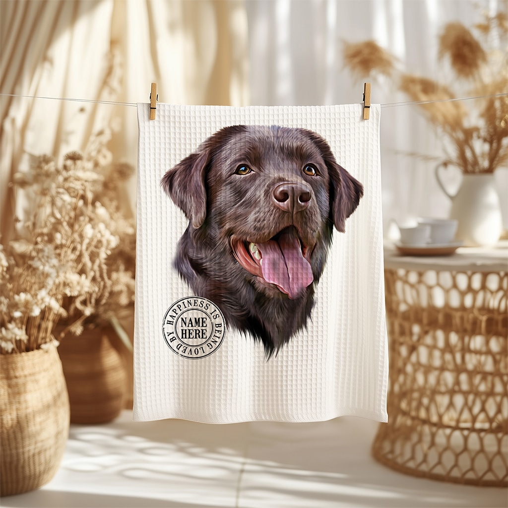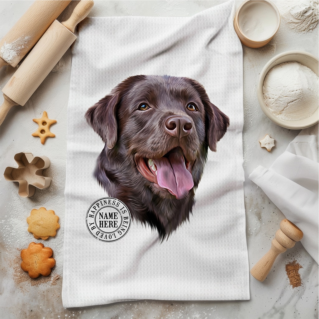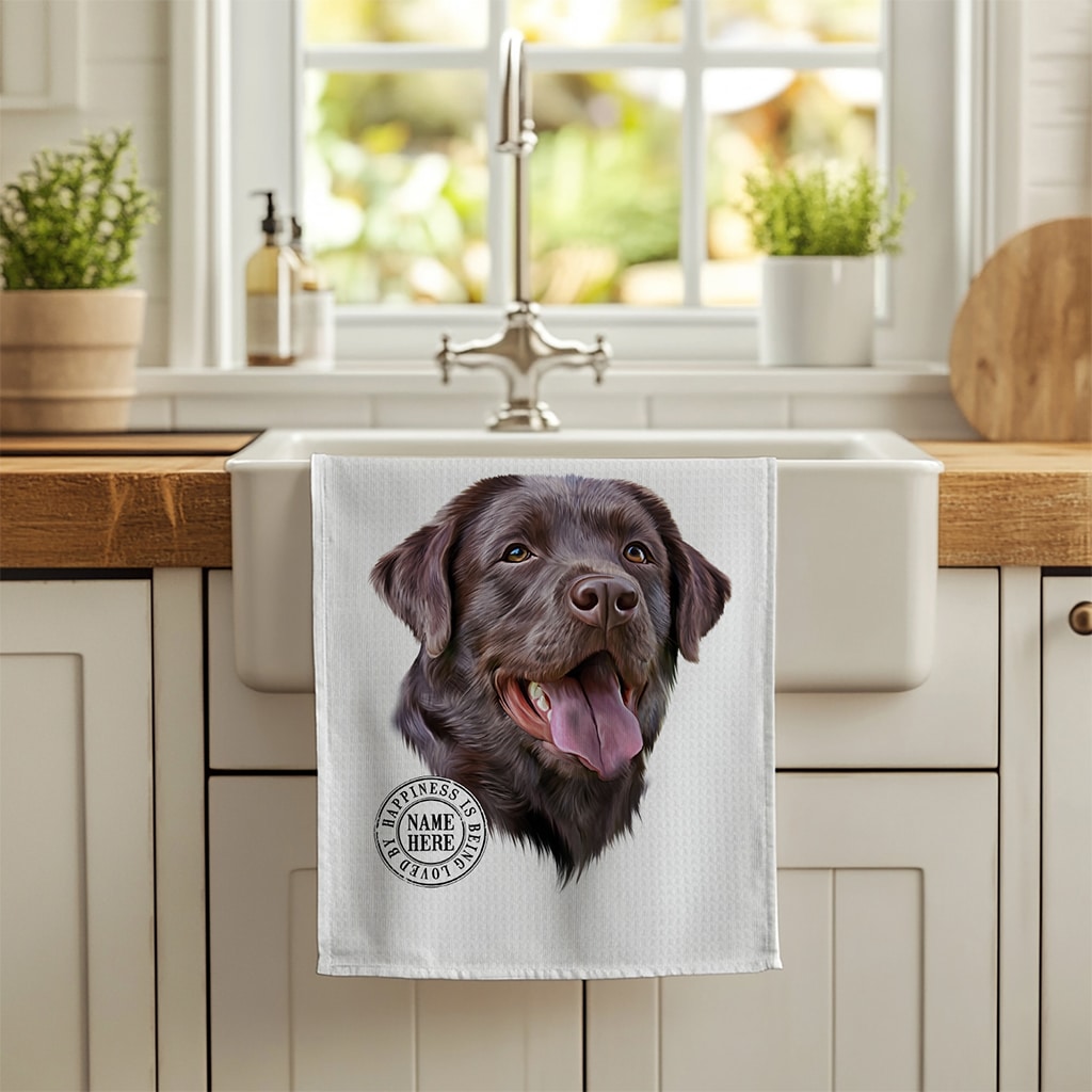 This Personalised Labrador Dog Kitchen Tea Towel is perfect for every dog lover, custom personalised with your dog’s name.