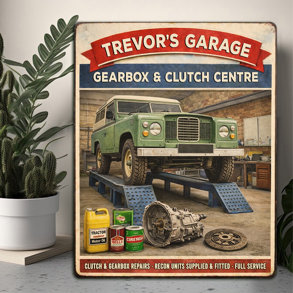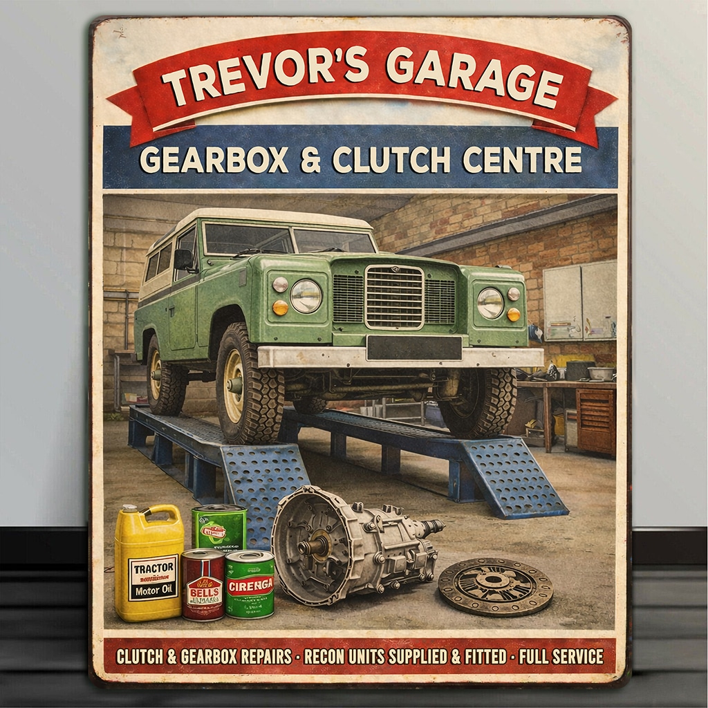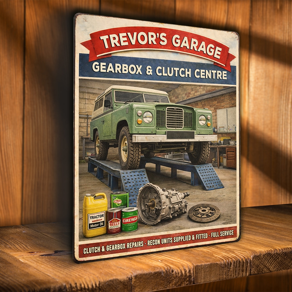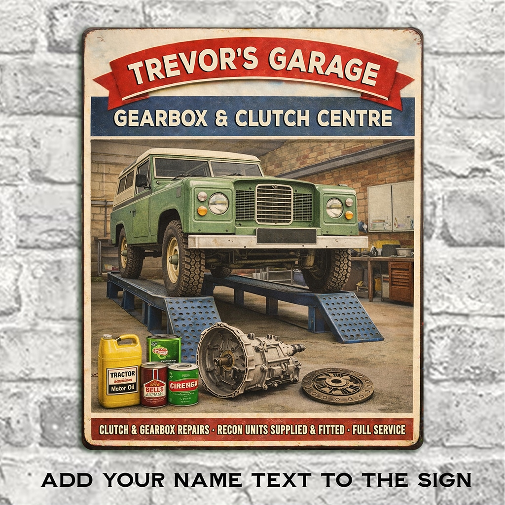 Personalised Land Rover – Gear Box & Clutch Garage Metal Wall Sign is the perfect gift for any garage owner or car garage fan.