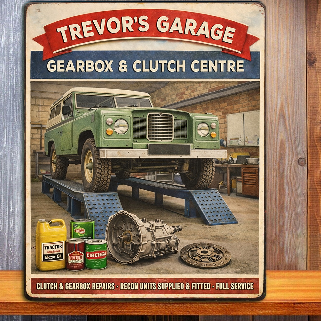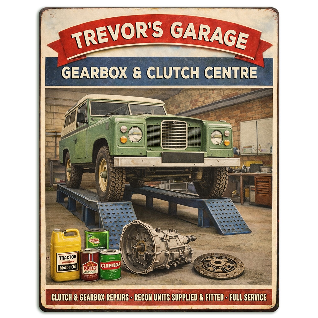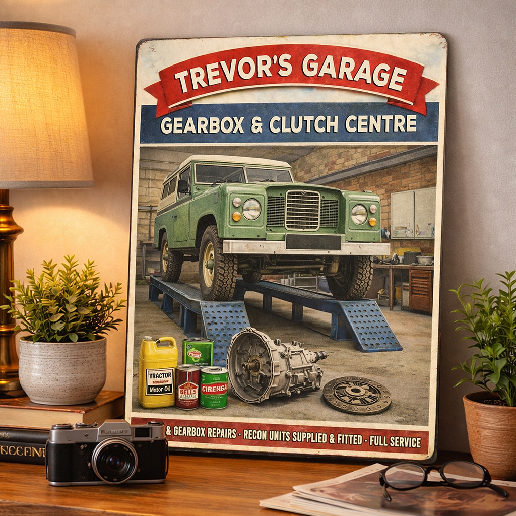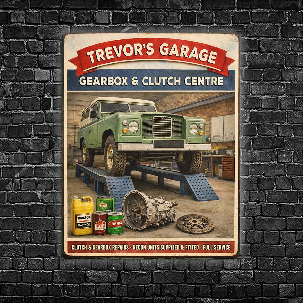 Personalised Land Rover – Gear Box & Clutch Garage Metal Wall Sign is the perfect gift for any garage owner or car garage fan.