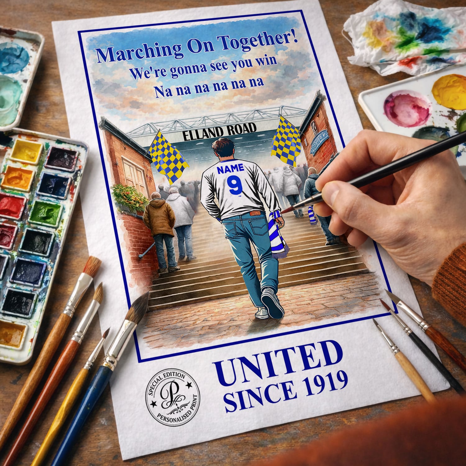 Personalised Leeds Football Stadium Print A3 A4 Framed Unframed Wall Art Gift.