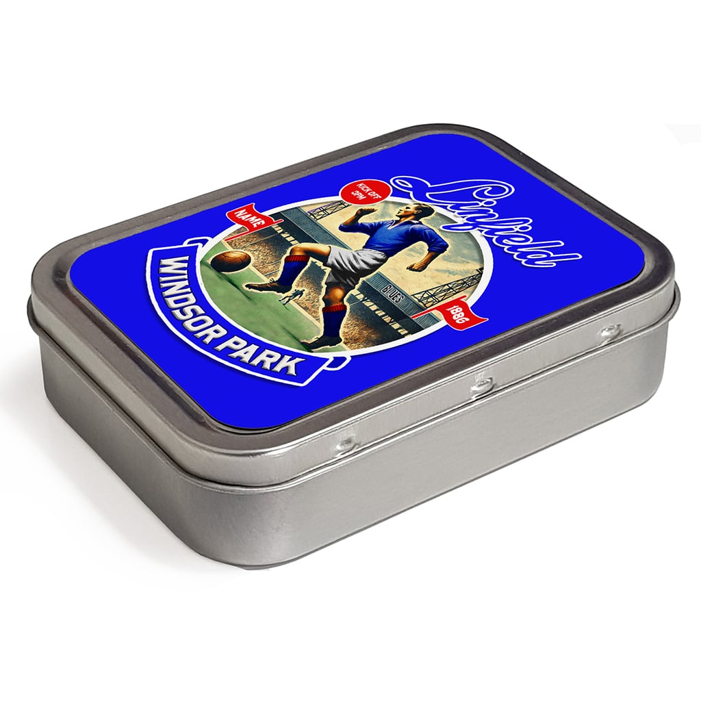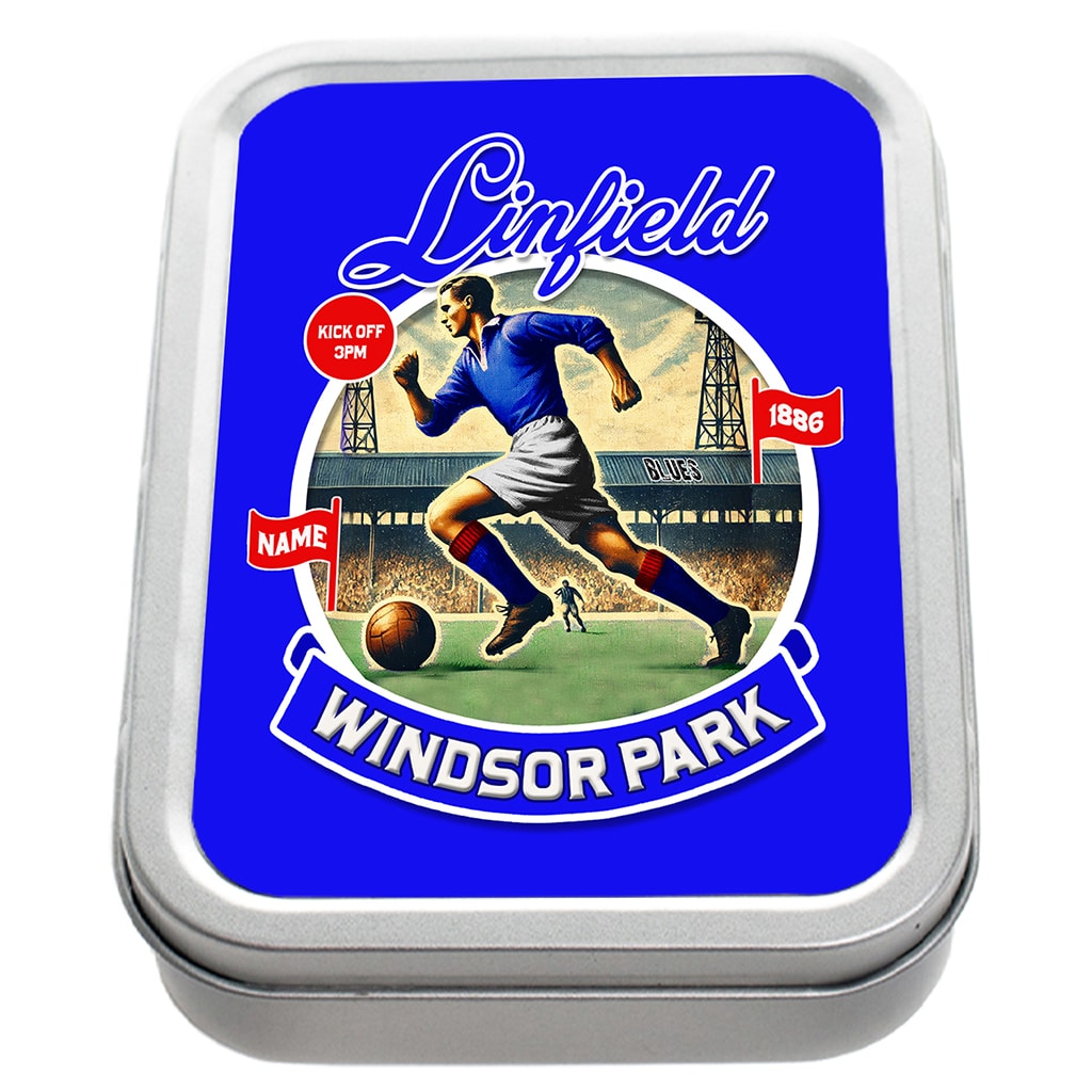 Personalised Linfield Football Nostalgia Tobacco Tin, the ideal gift for any smoker.