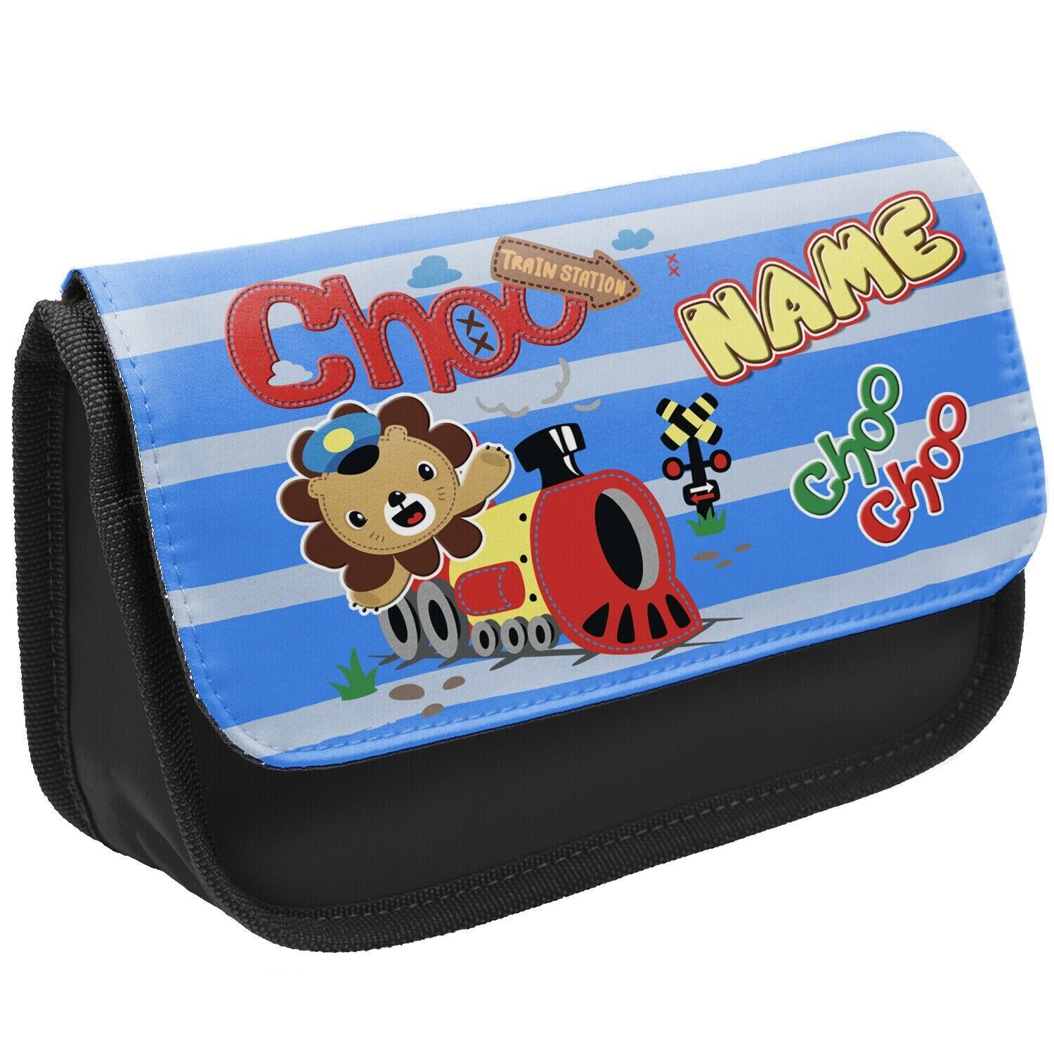 Personalised Lion Train Kids Black Pencil Case Stationery Bag KK15