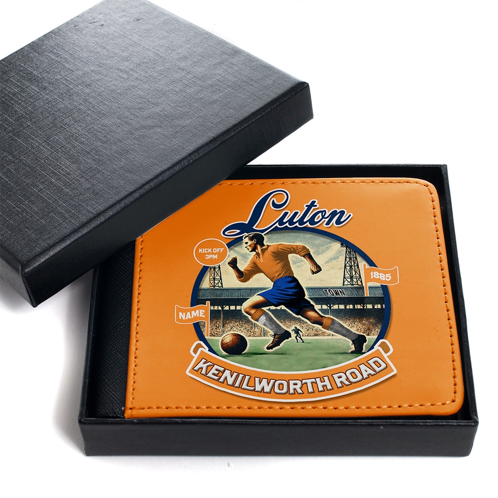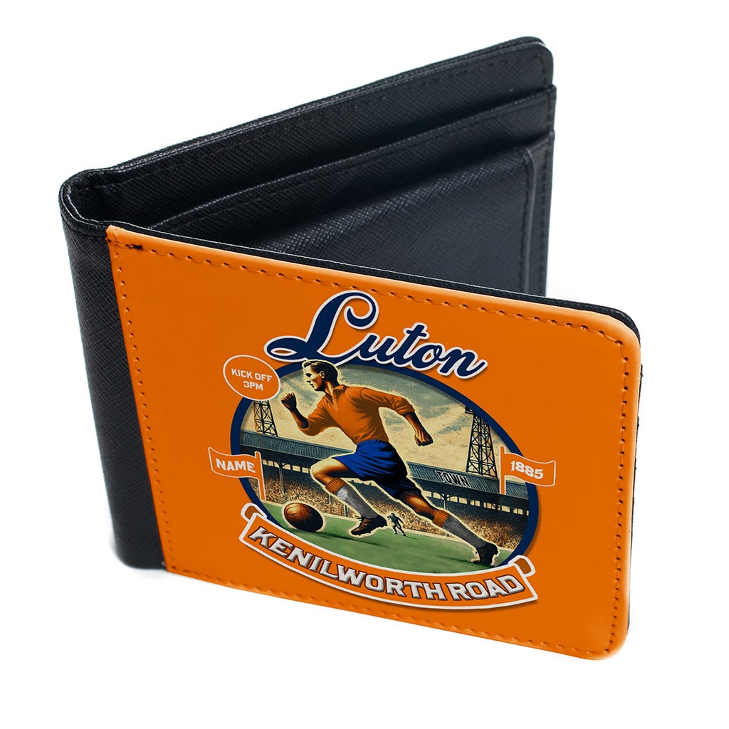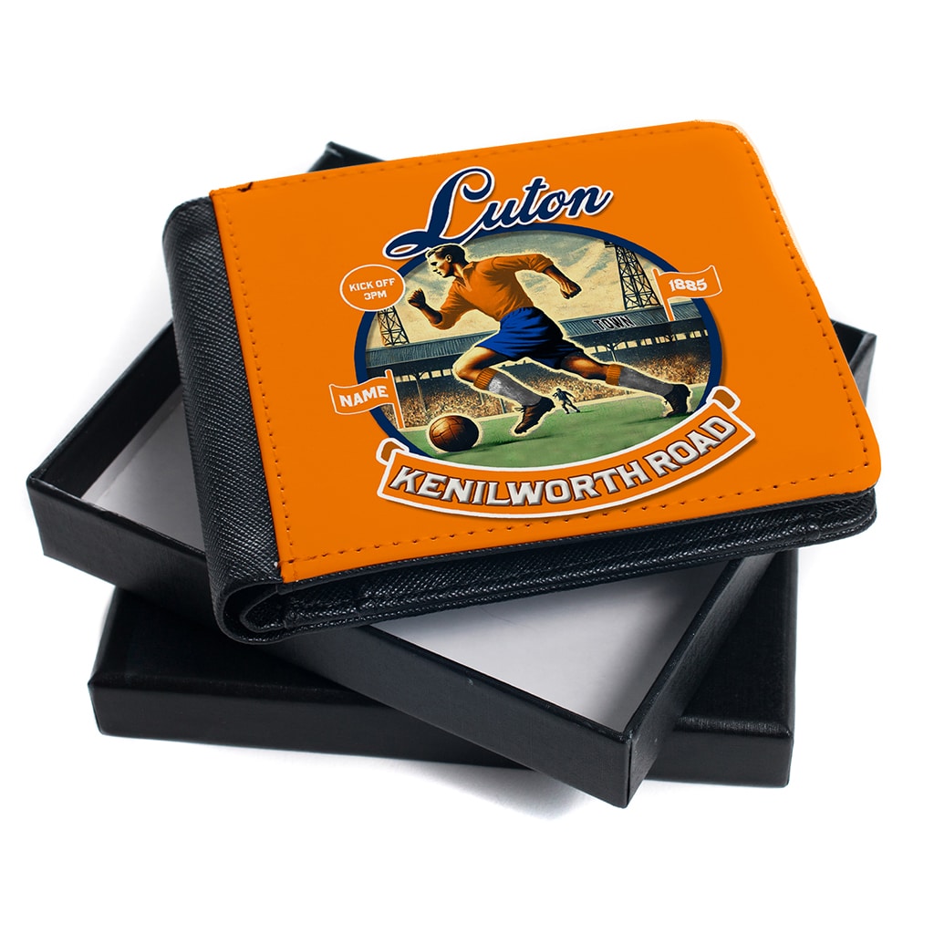 Personalised Luton Vintage Nostalgia Football Wallet, the Perfect Retro Football Team Fan Gift for Him!