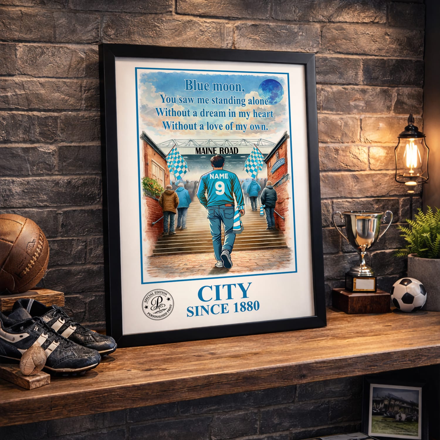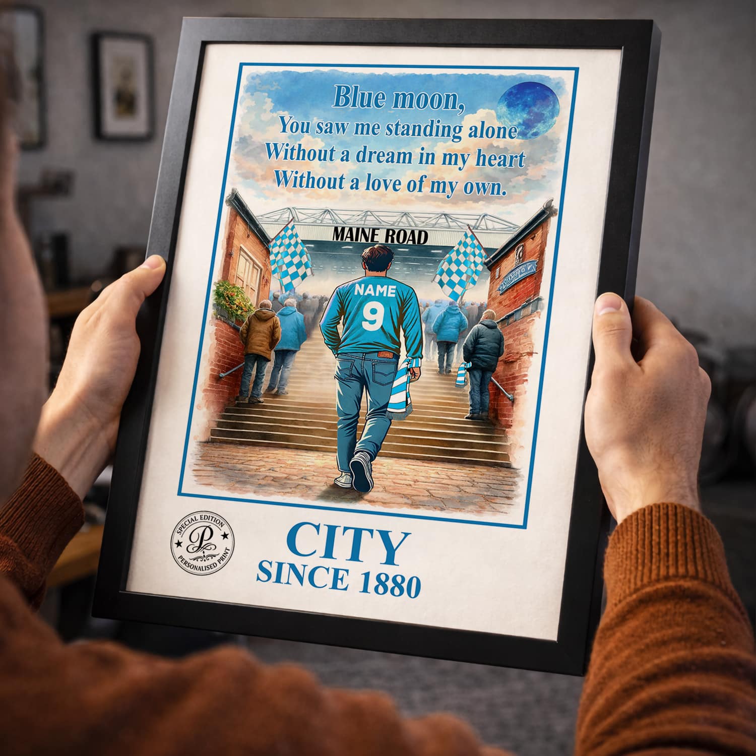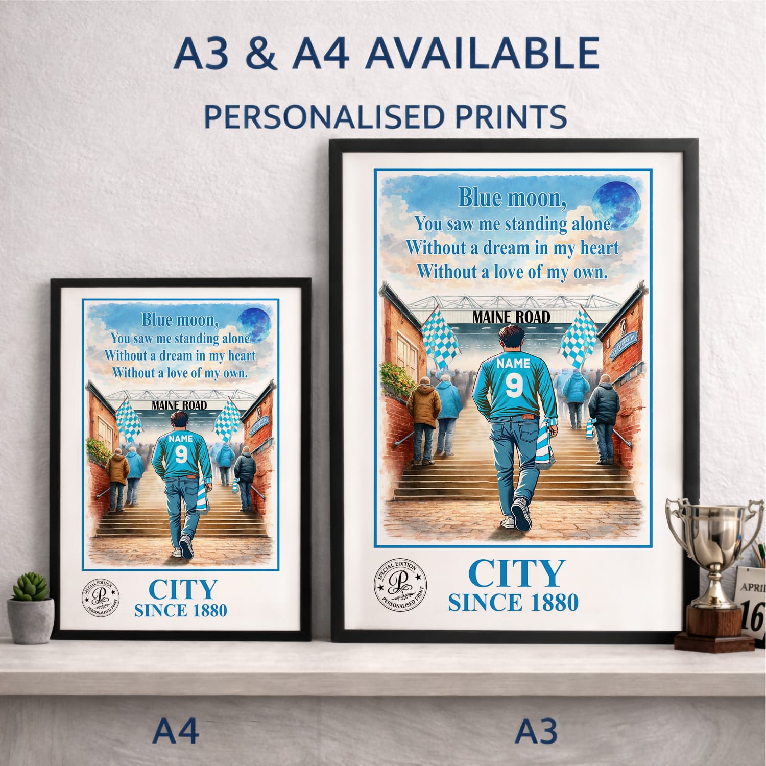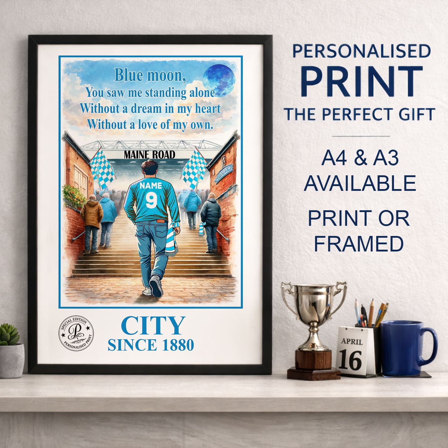Personalised Man City Football Stadium Print A3 A4 Framed Unframed Wall Art Gift.