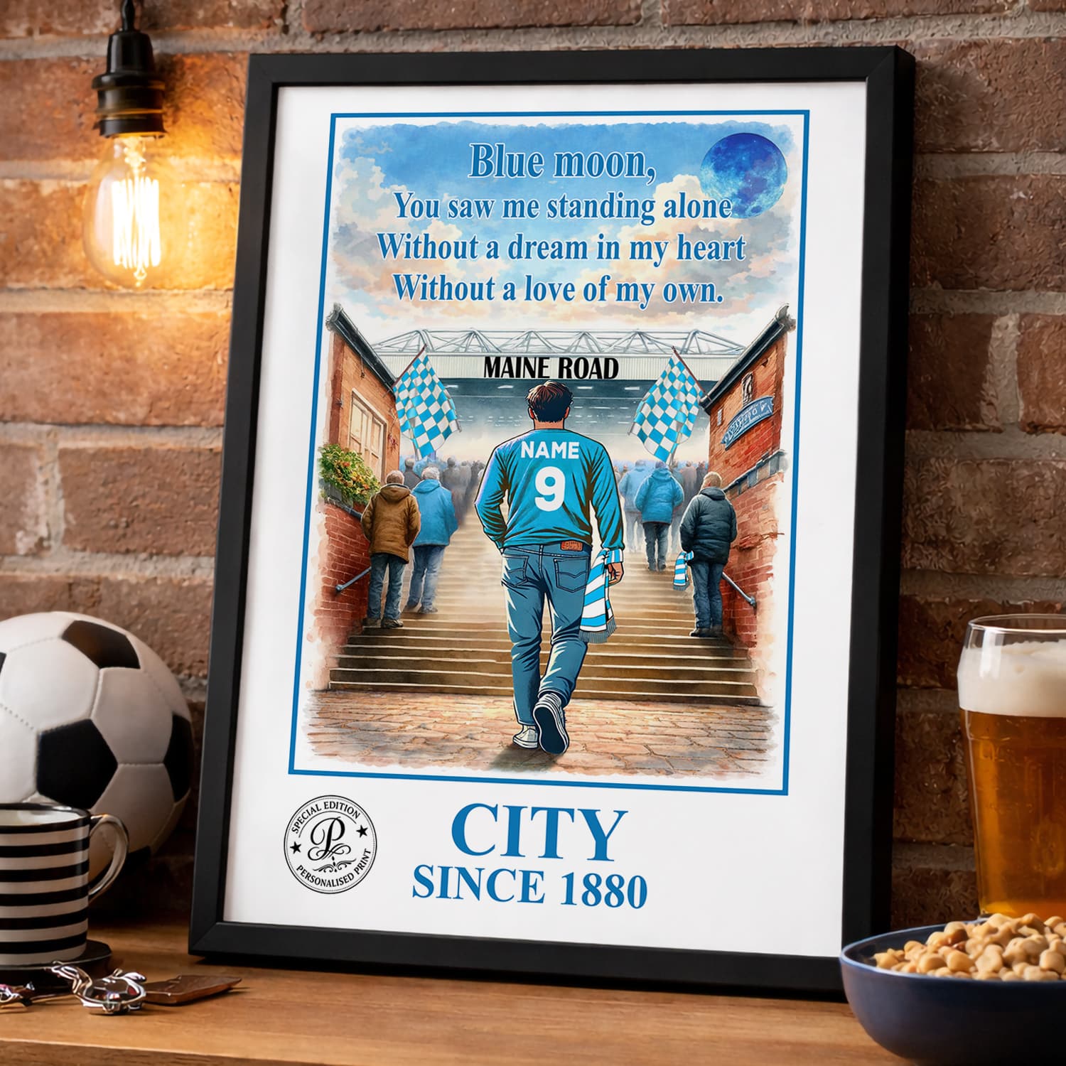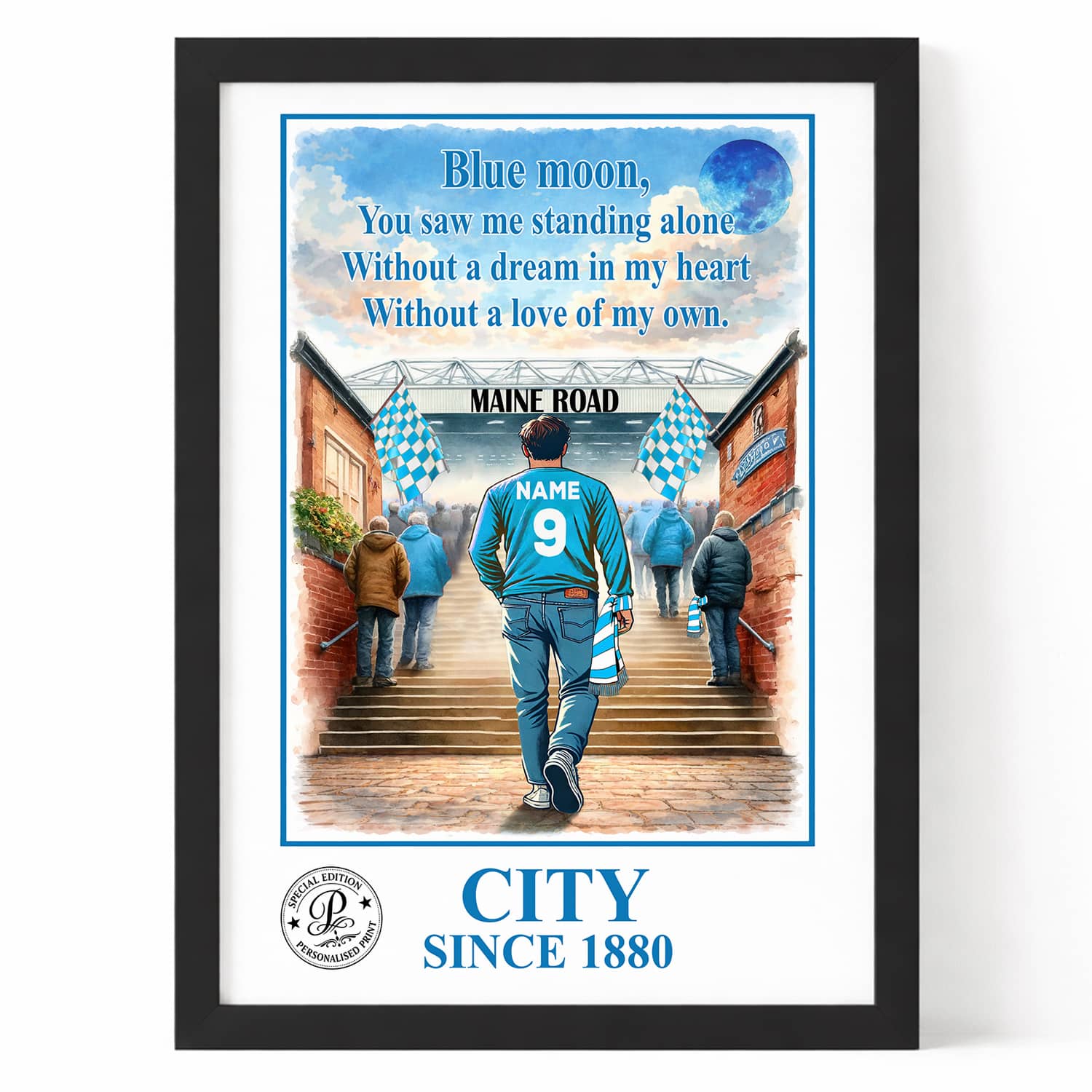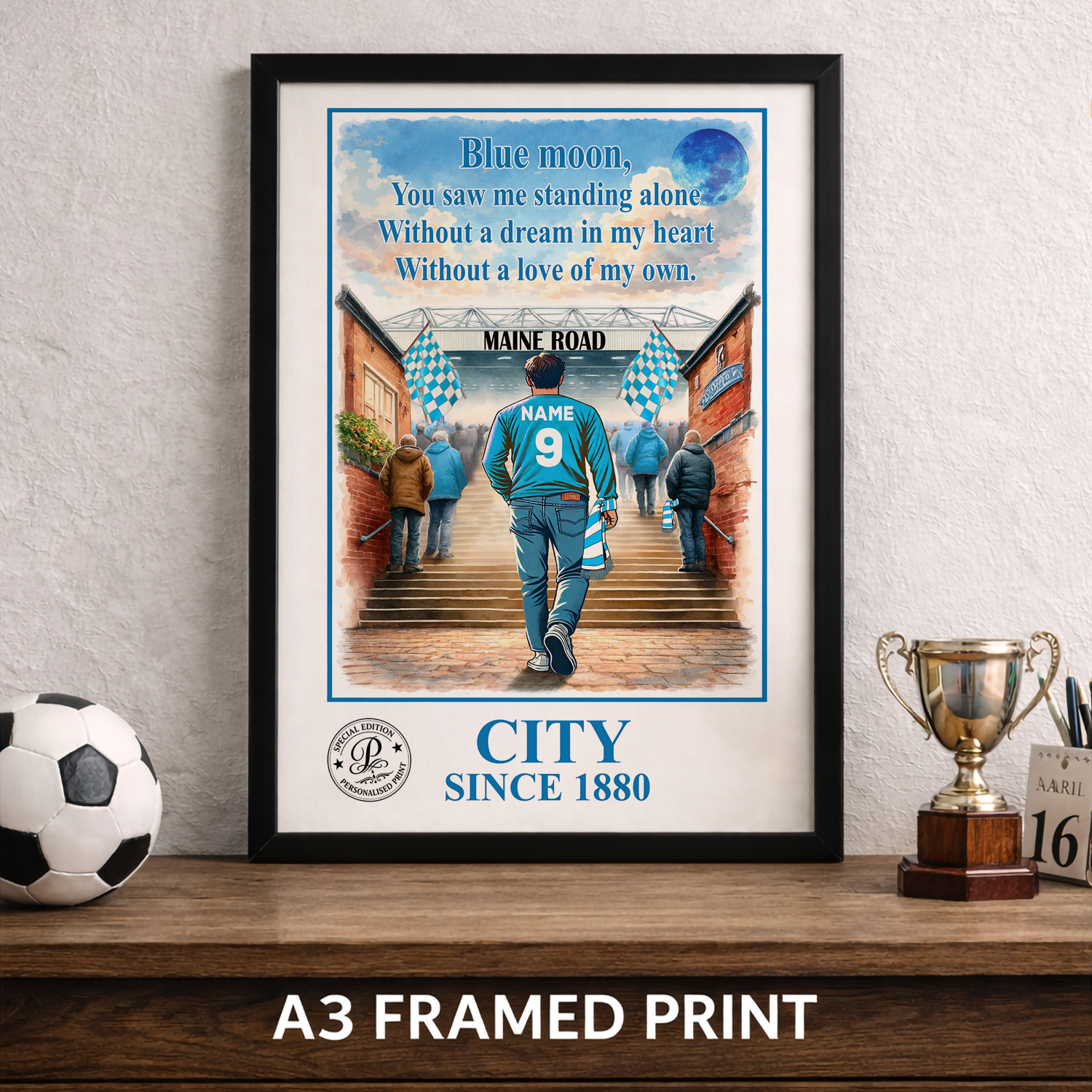 Personalised Man City Football Stadium Print A3 A4 Framed Unframed Wall Art Gift.