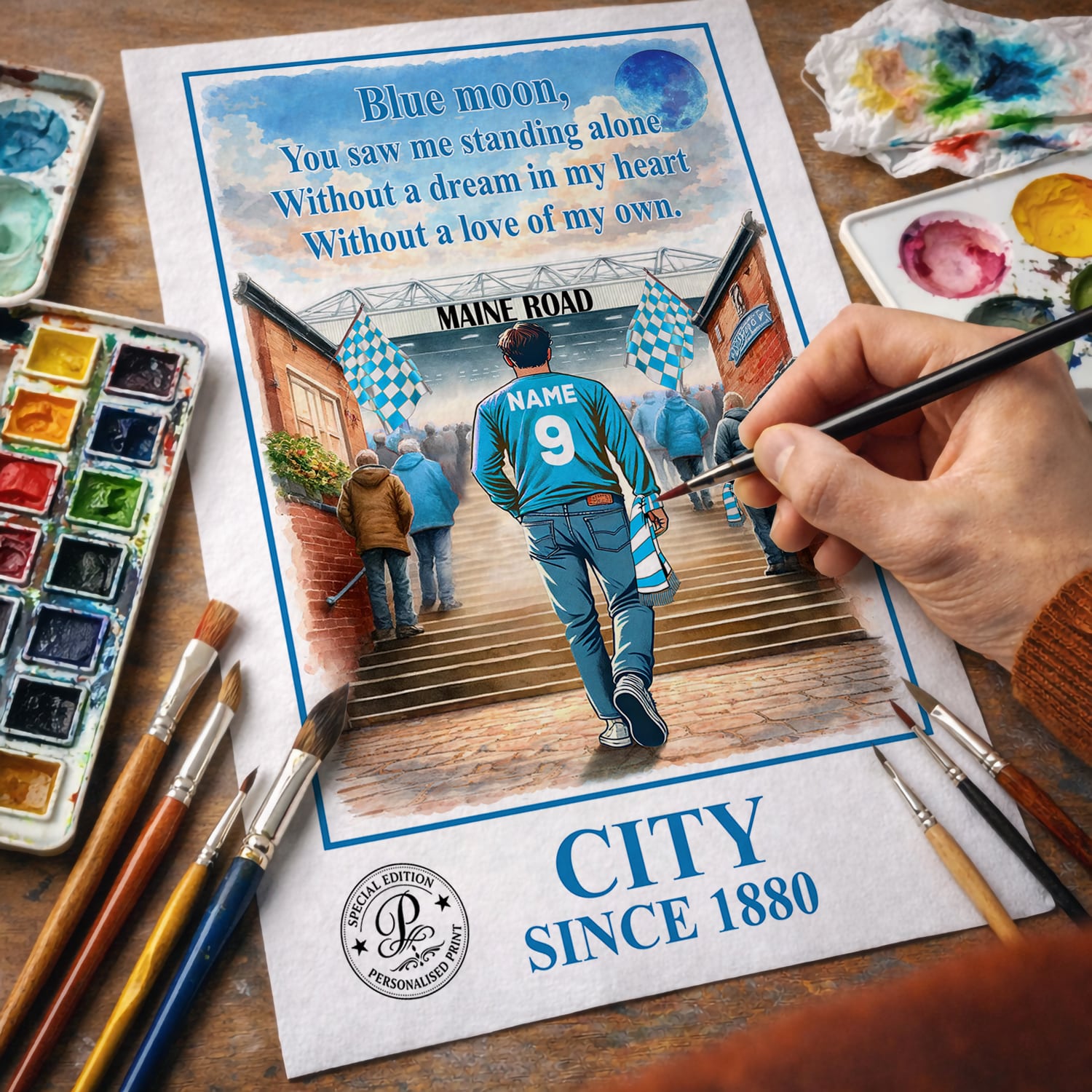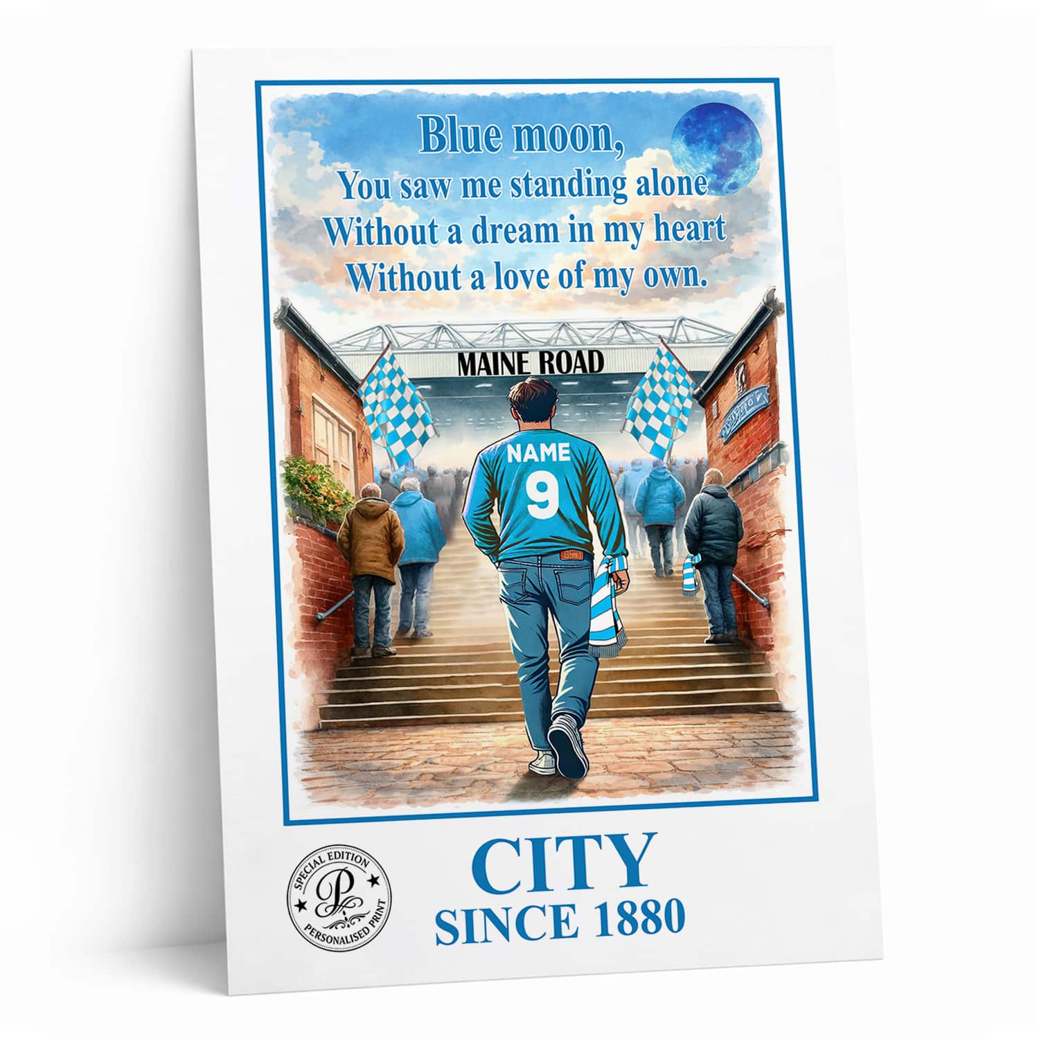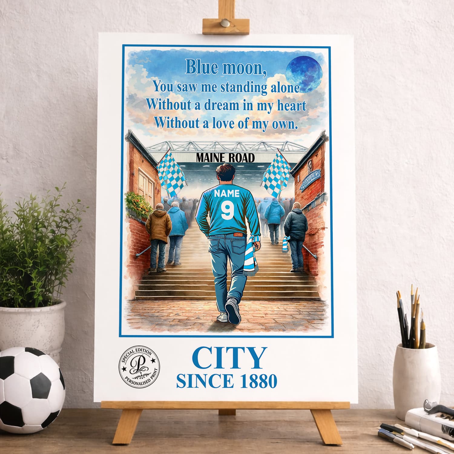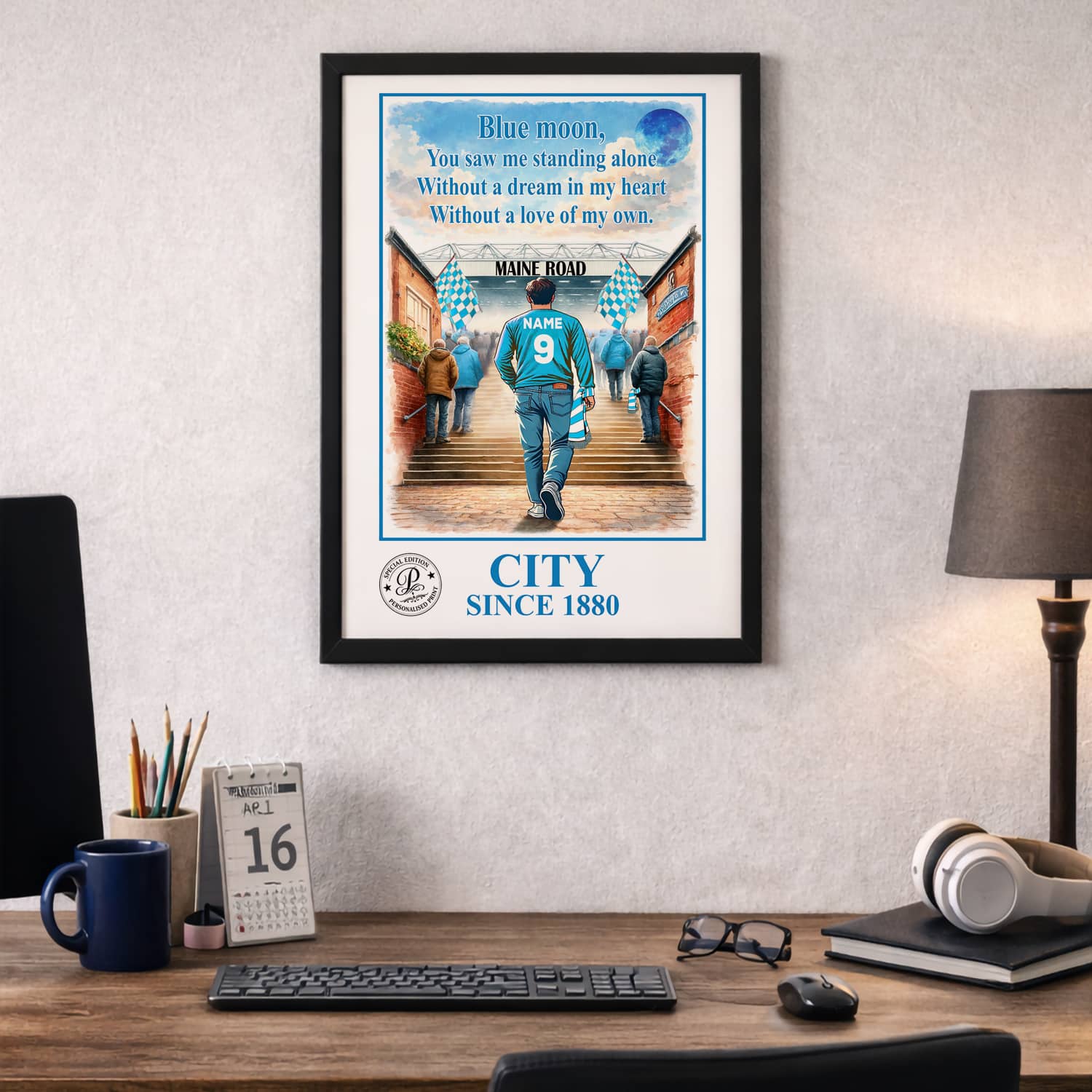 Personalised Man City Football Stadium Print A3 A4 Framed Unframed Wall Art Gift.