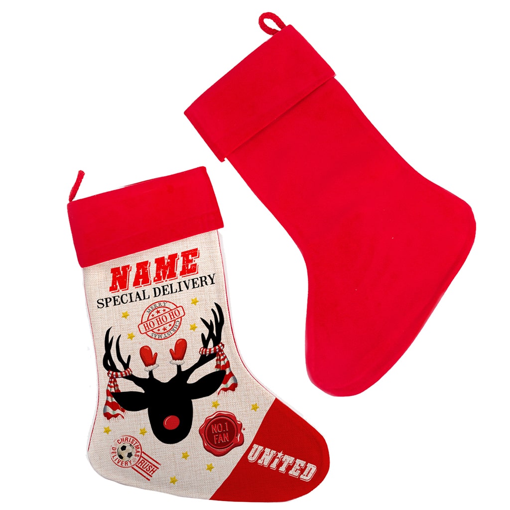 Personalised Man Utd Football Christmas Stocking, the perfect seasonal gift for every football fan.