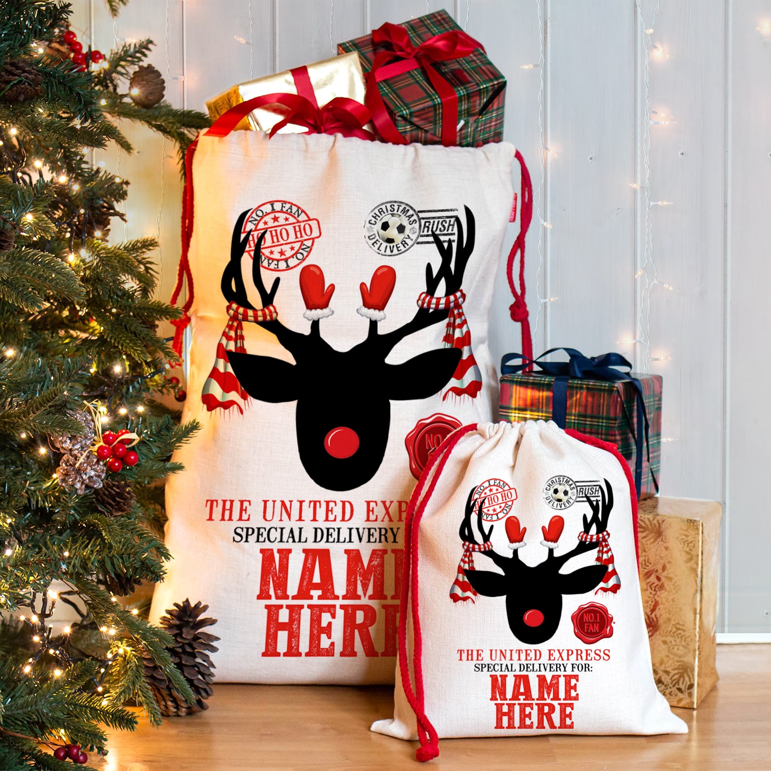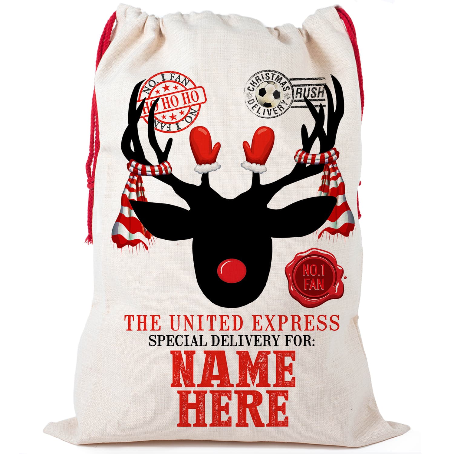 Personalised Man Utd Football Reindeer Christmas Sack RCS42