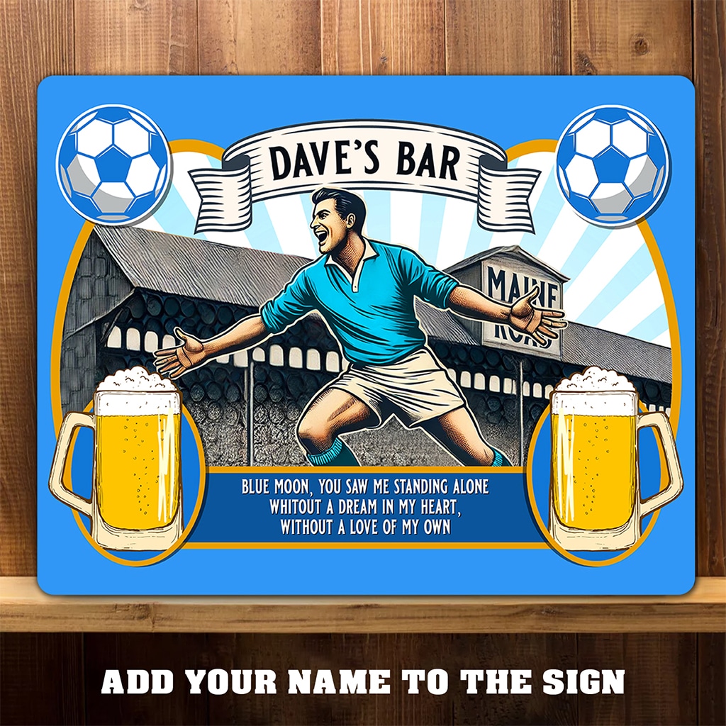 This Personalised Manchester City Football Retro Stadium Beer Bar Metal Sign is the perfect vintage football fan pub gift.