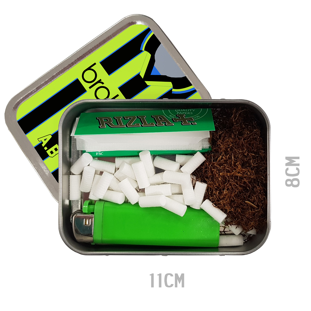 Keep ciggy papers, filters and loose baccy fresh in this custom retro casual football tin.