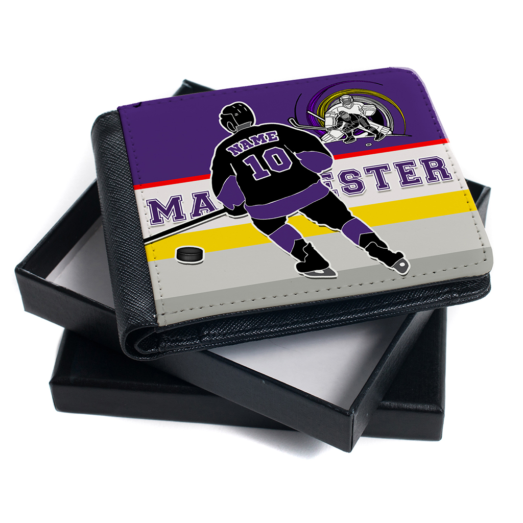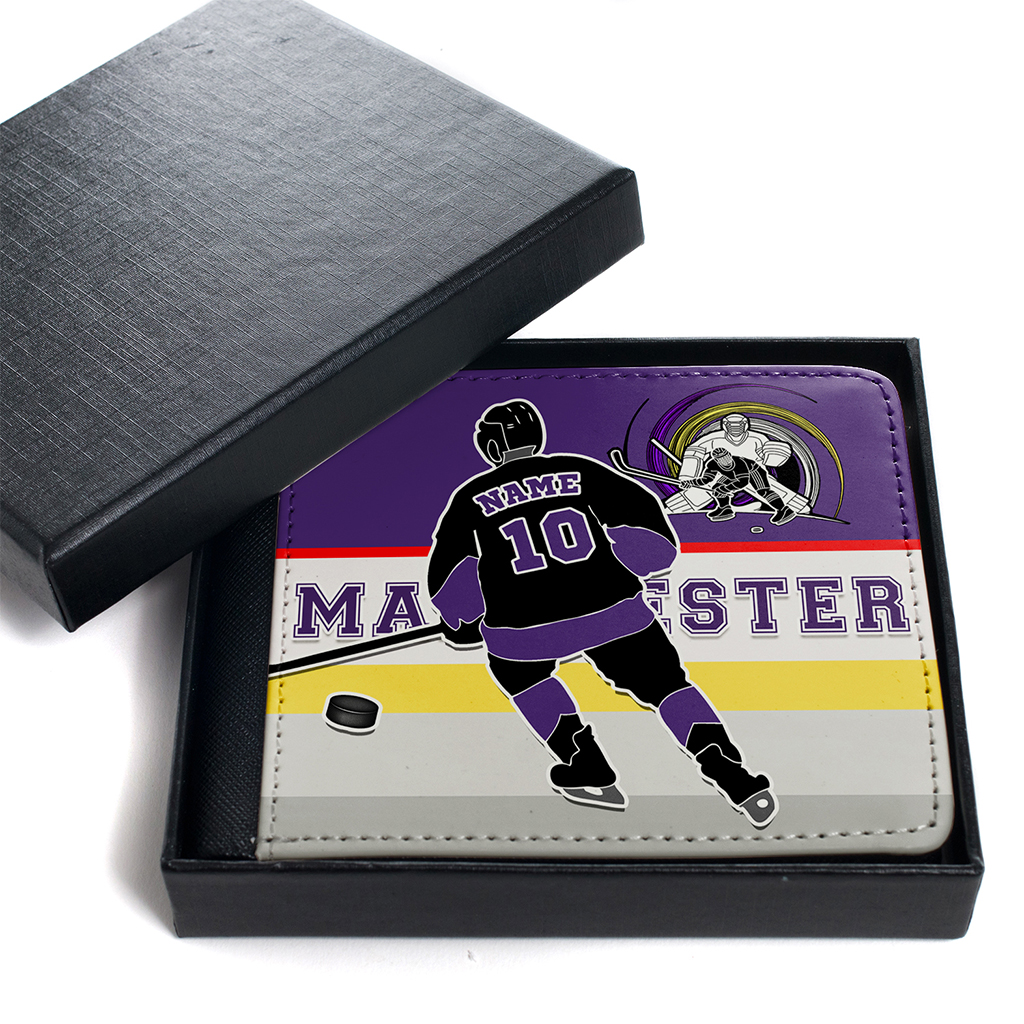 This personalised Manchester Storm ice hockey team wallet is the perfect gift for sports fans! They are handmade to order, personalised with your name or custom text. Support your favourite ice hockey team with pride. Each bi-fold wallet has card slots and a handy coin compartment. Sure to make a unique and practical men’s gift for him.
