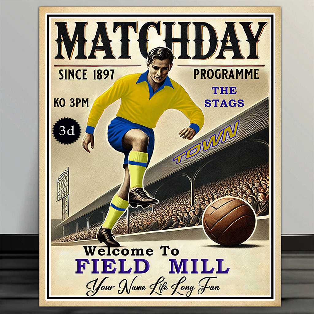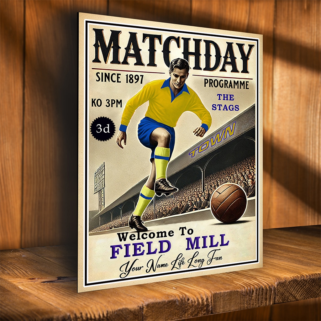This Personalised Mansfield Football Programme Retro Metal Sign is the perfect vintage football fan gift.