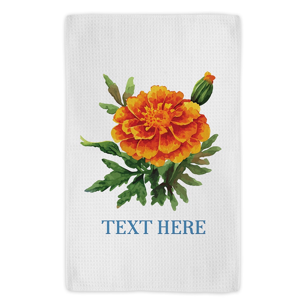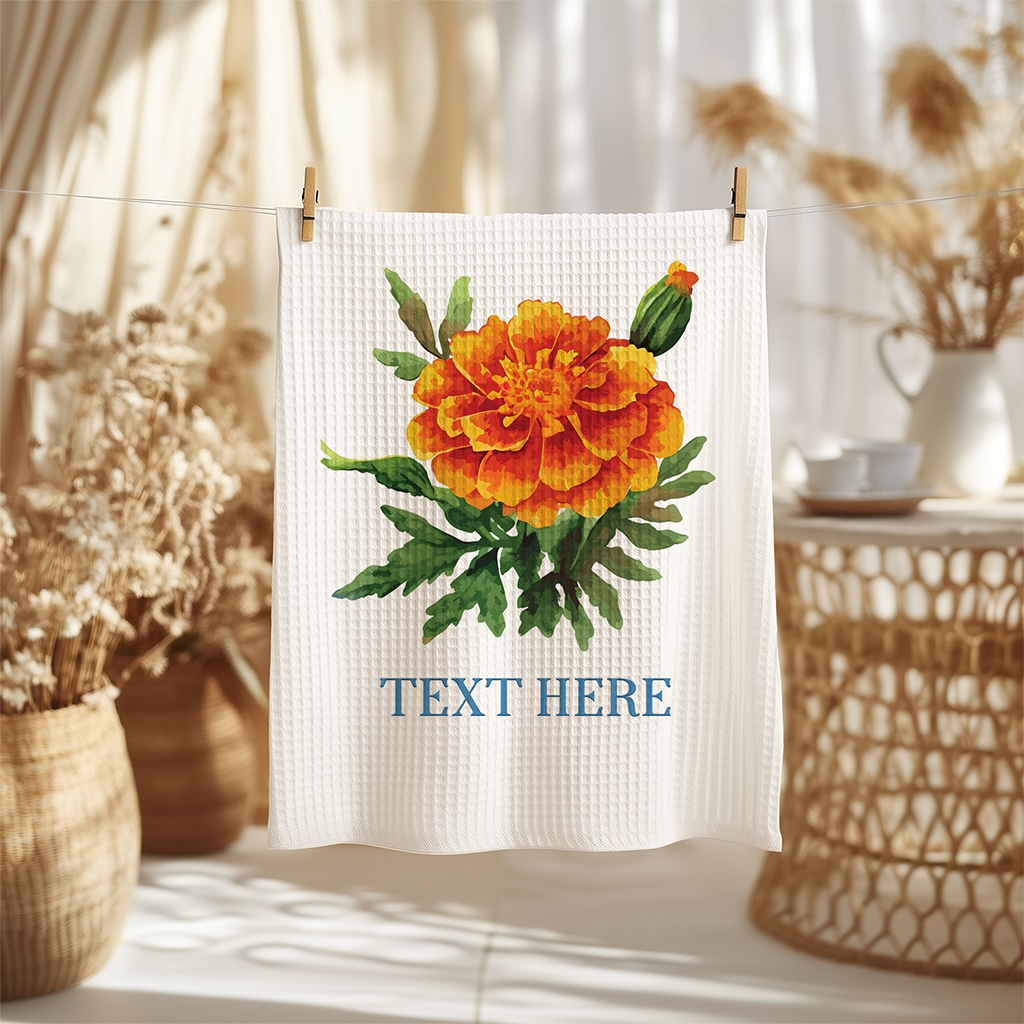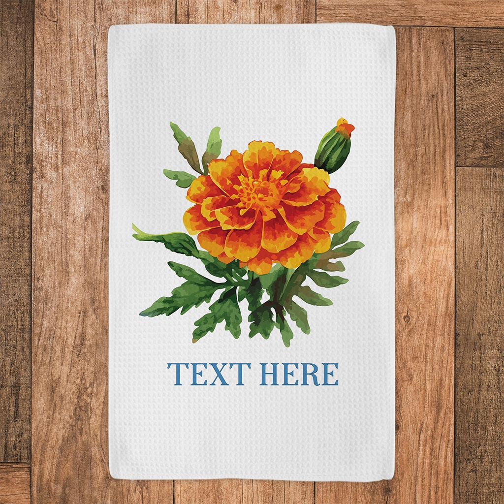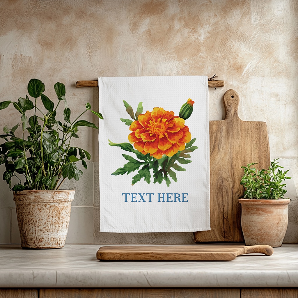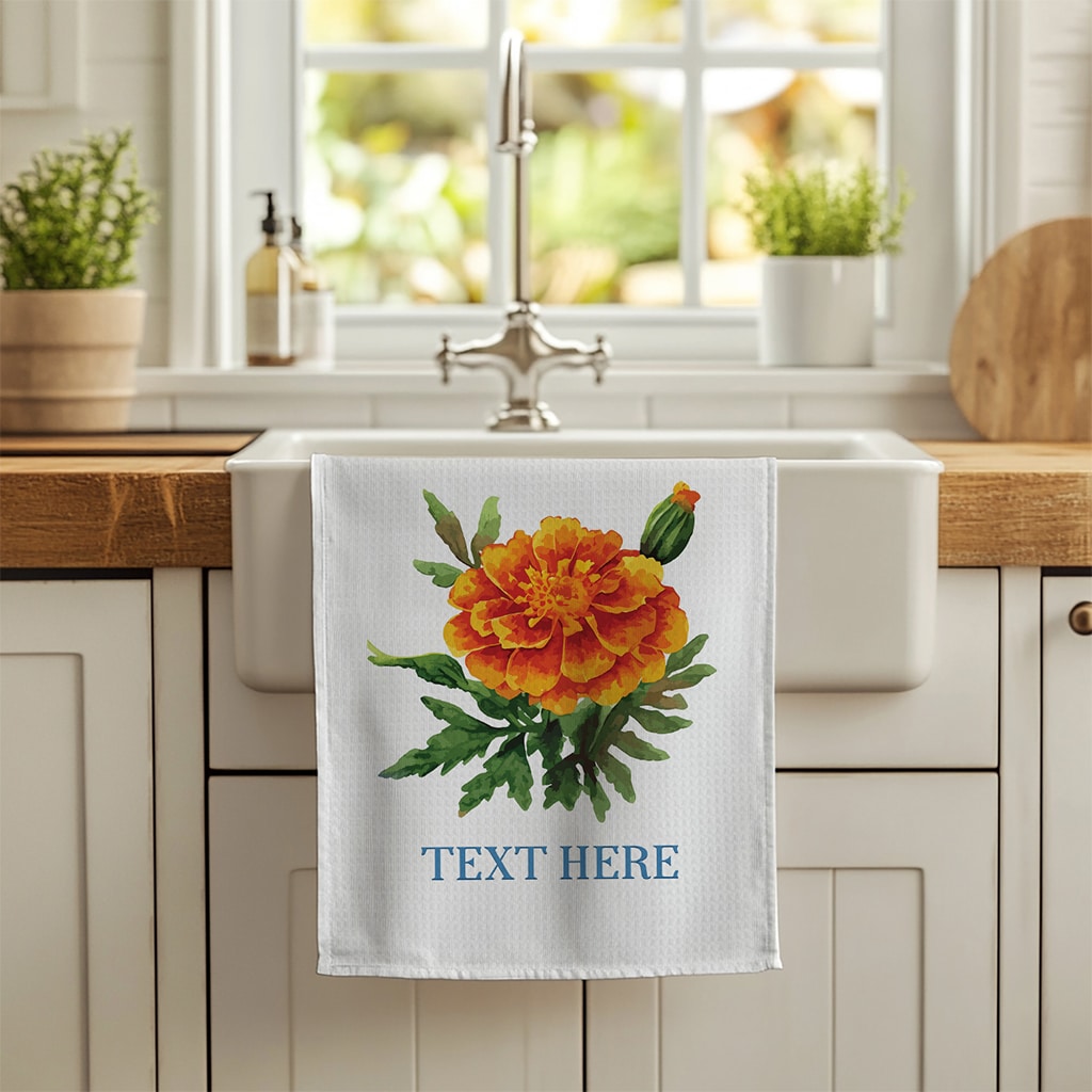 Personalised Marigold Floral Kitchen Tea Towel KC143