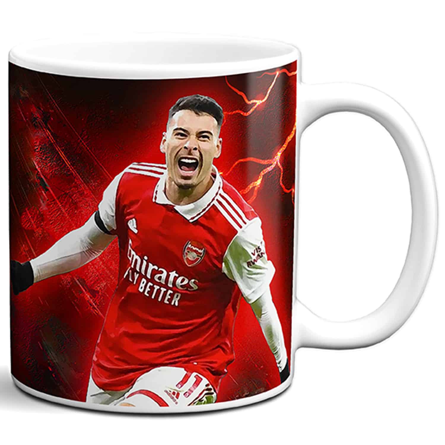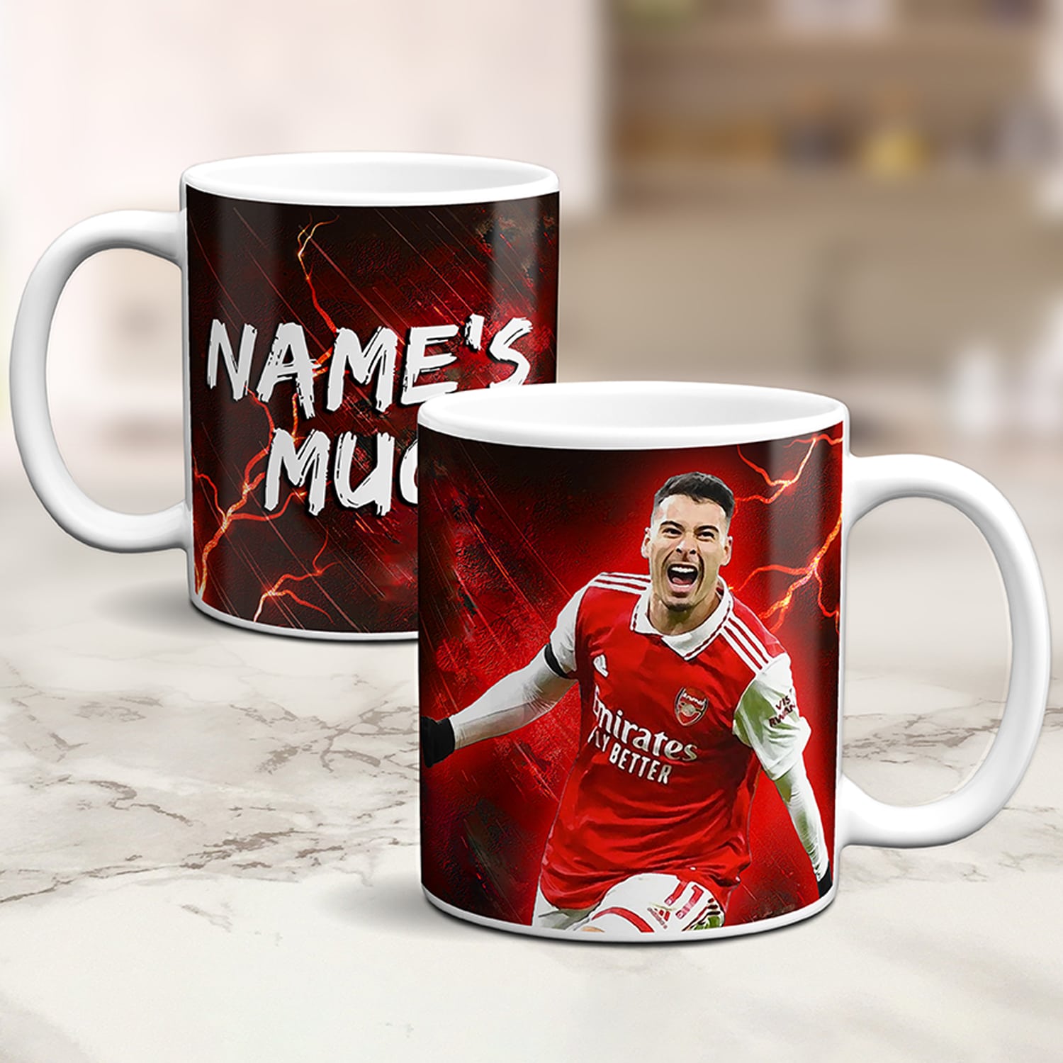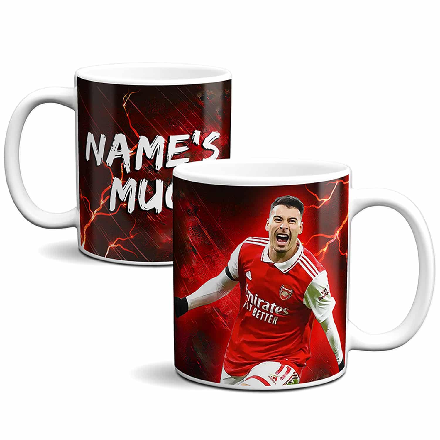 Personalised Martinelli Arsenal Football Mug, the Perfect Football Team Fan Gift! Suprise any football supporter with one of these cool legend mugs. The ideal gift for boys birthdays and Christmas stocking fillers. They are handmade to order, personalised with your customised text.