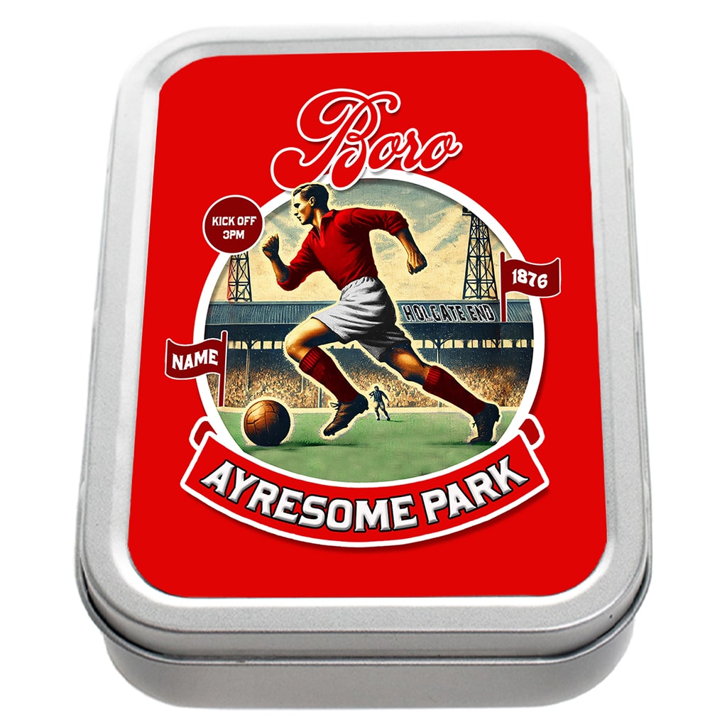 Personalised Middlesbrough Football Nostalgia Tobacco Tin, the ideal gift for any smoker.