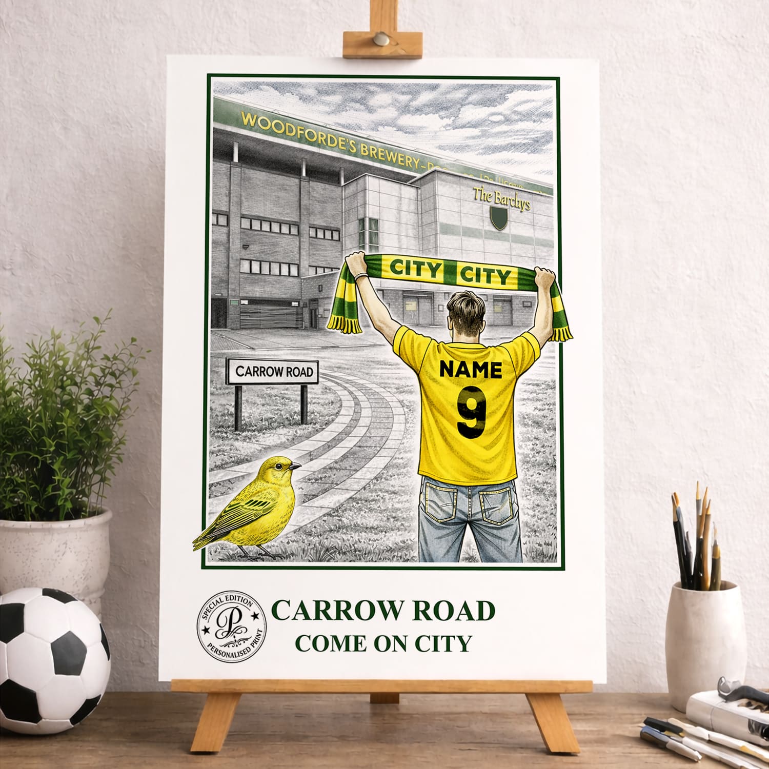 Personalised Norwich Football Stadium Print A3 A4 Framed Unframed Wall Art Gift.