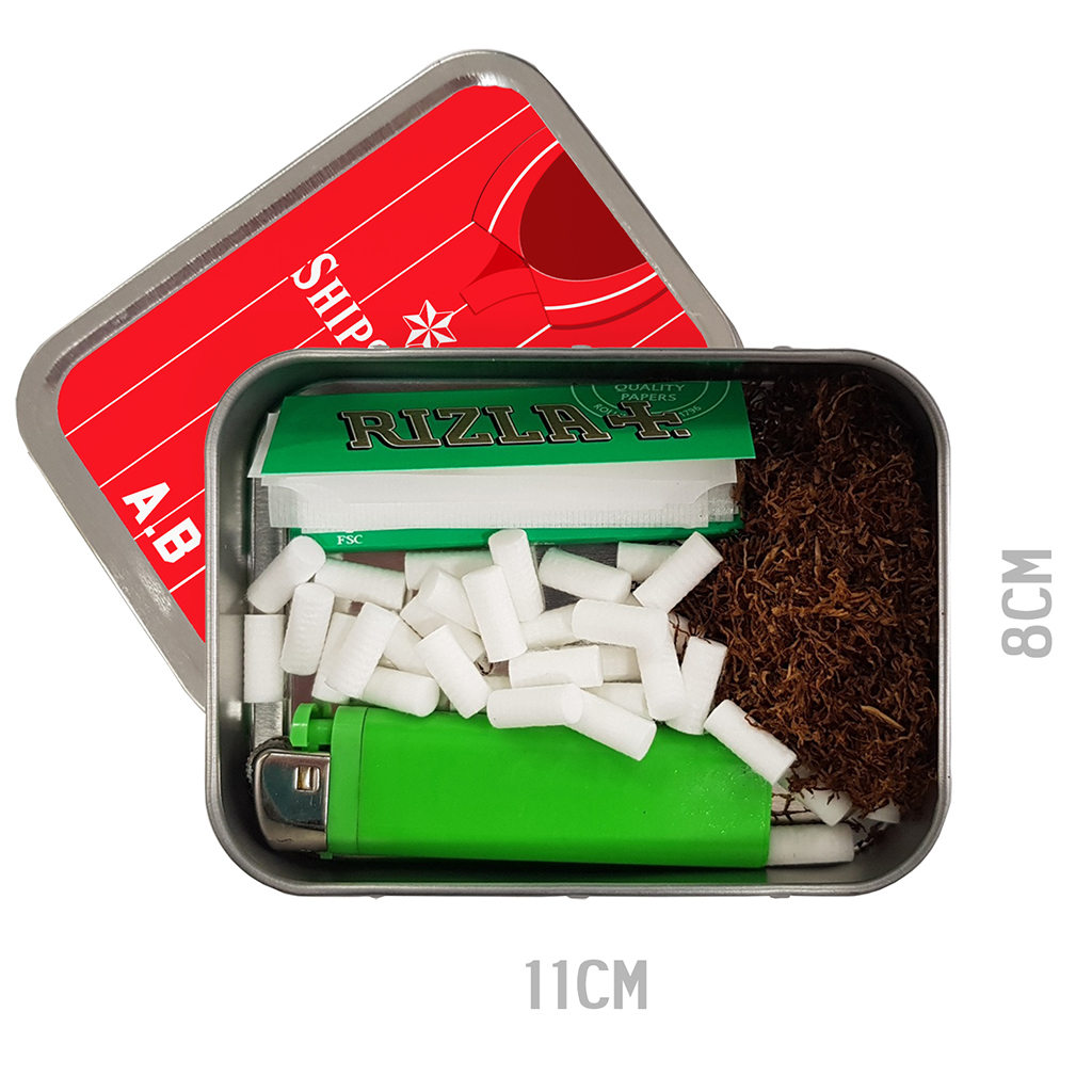 Keep ciggy papers, filters and loose baccy fresh in this custom retro casual football tin.