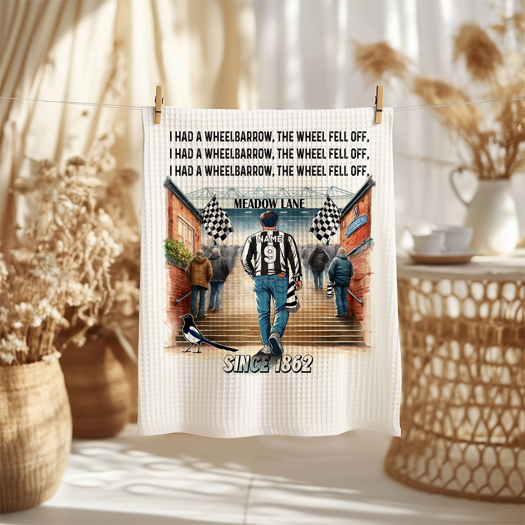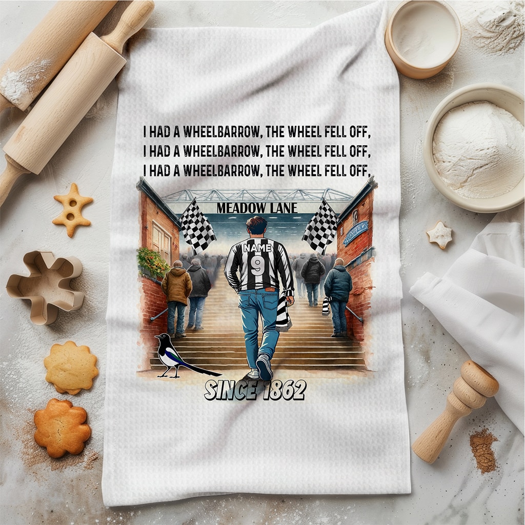 This Personalised Notts County Football Stadium Kitchen Tea Towel is perfect for every football fan, custom personalised with a name and squad number.