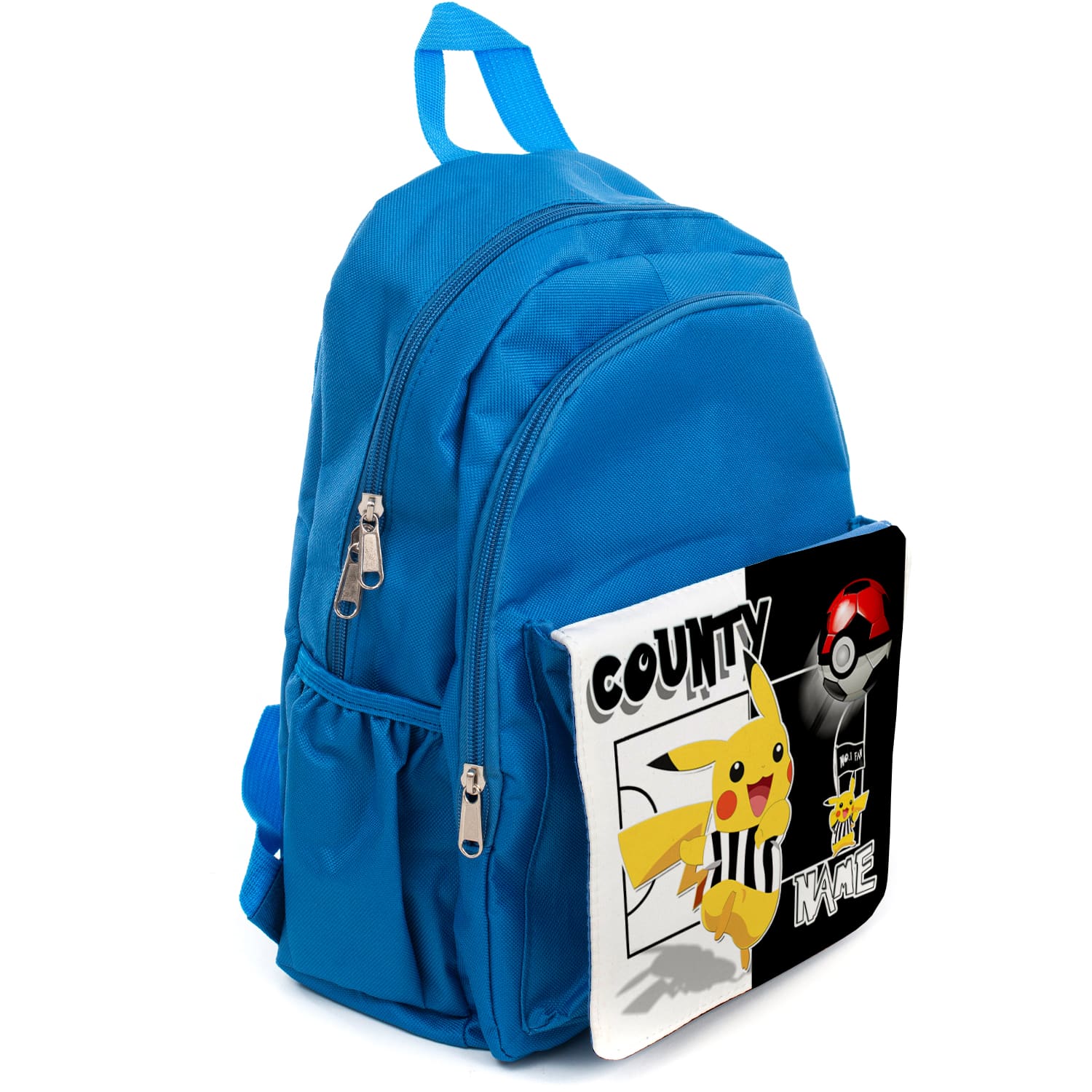 Personalised Notts County Pokemon Football Backpack bag is the perfect back to school gift for your child! Great as a kids’ school book bag and ideal for sports PE kits, days out and travel. Each rucksack is handmade for you and personalised with a name. A unique and practical gift to get ready for term time. We have matching football team lunch bags and pencil cases too!