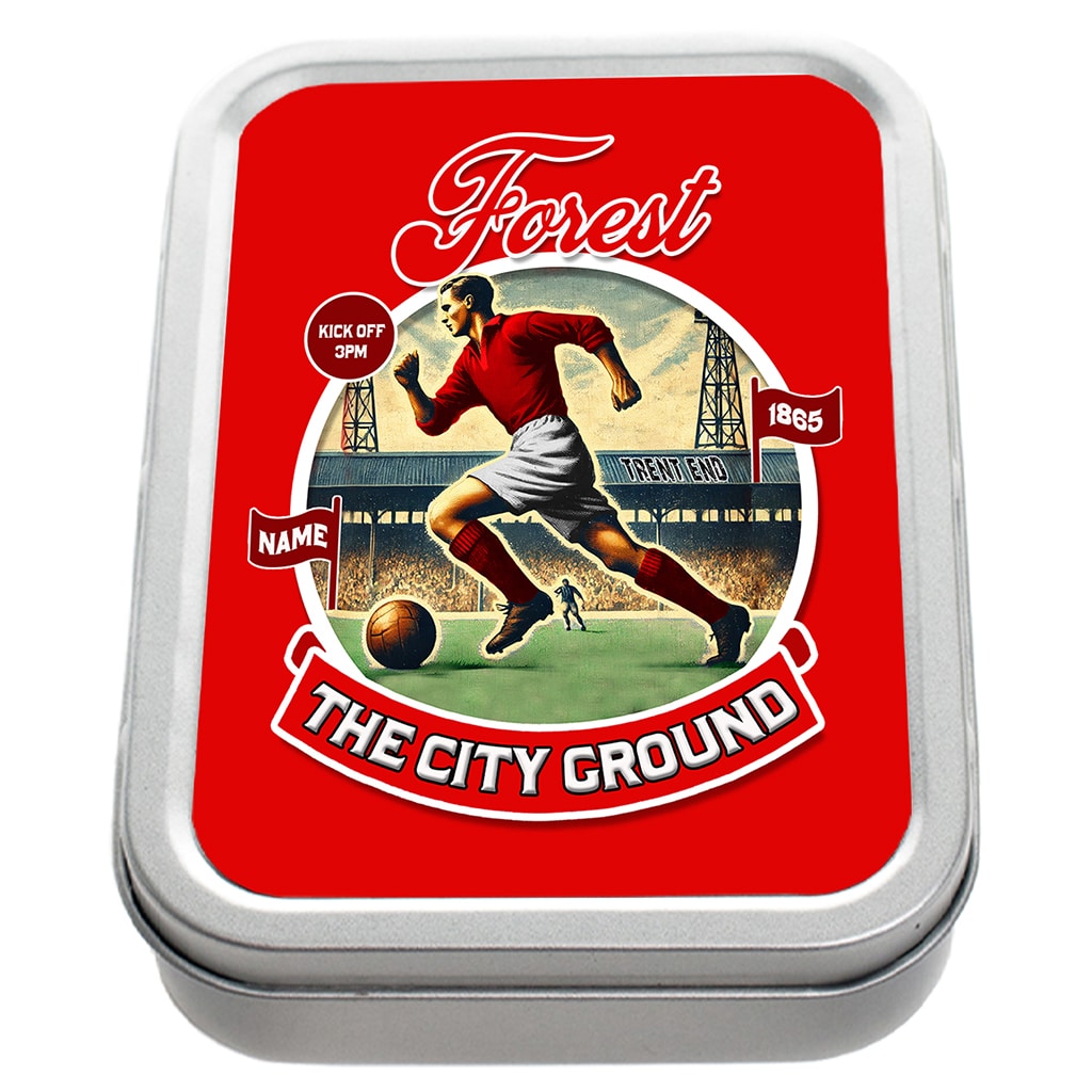 Personalised Notts Forest Football Nostalgia Tobacco Tin, the ideal gift for any smoker.
