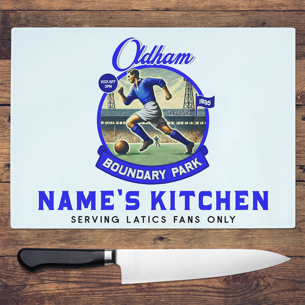 Personalised Oldham Vintage Nostalgia Football Chopping Board NFCH63
