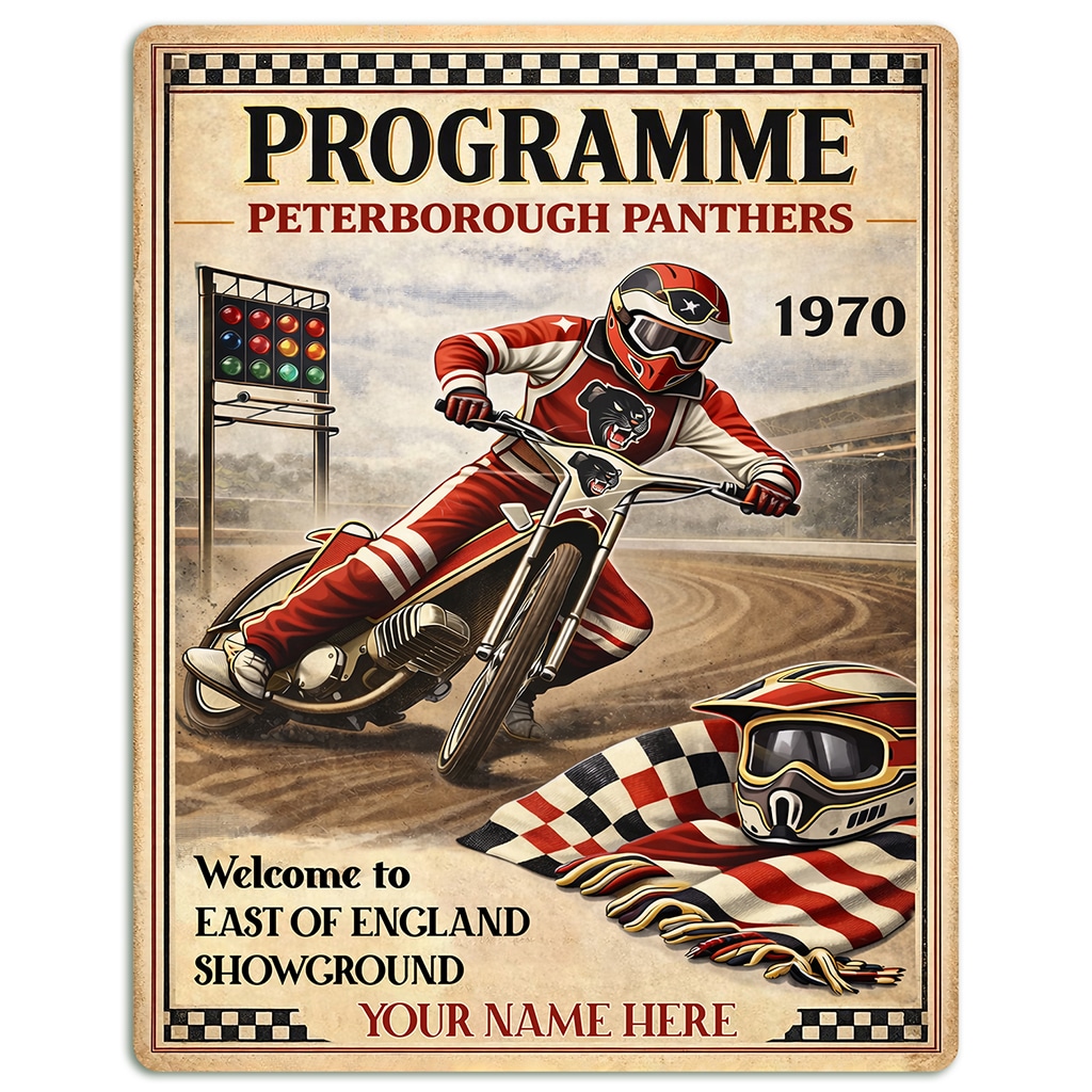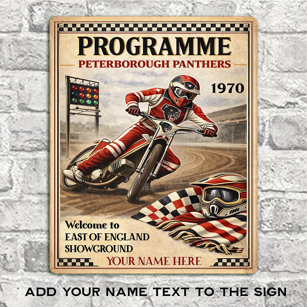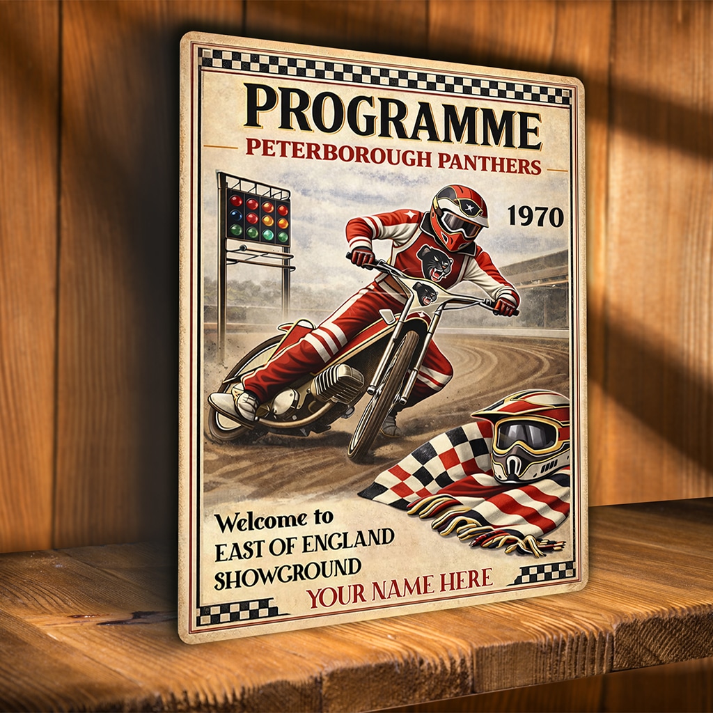 Personalised Peterborough Panthers Speedway Metal Wall Sign is the perfect gift for any Speed Way fan.