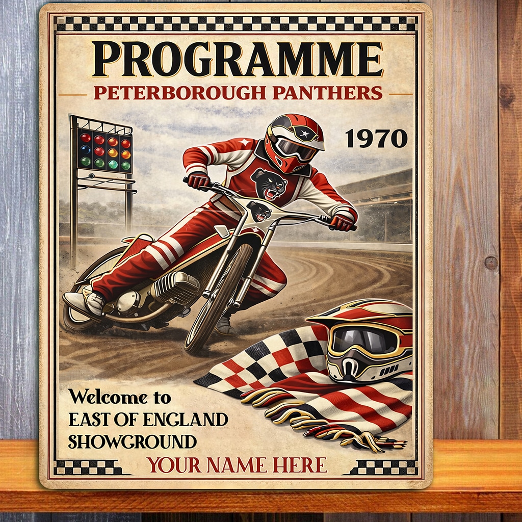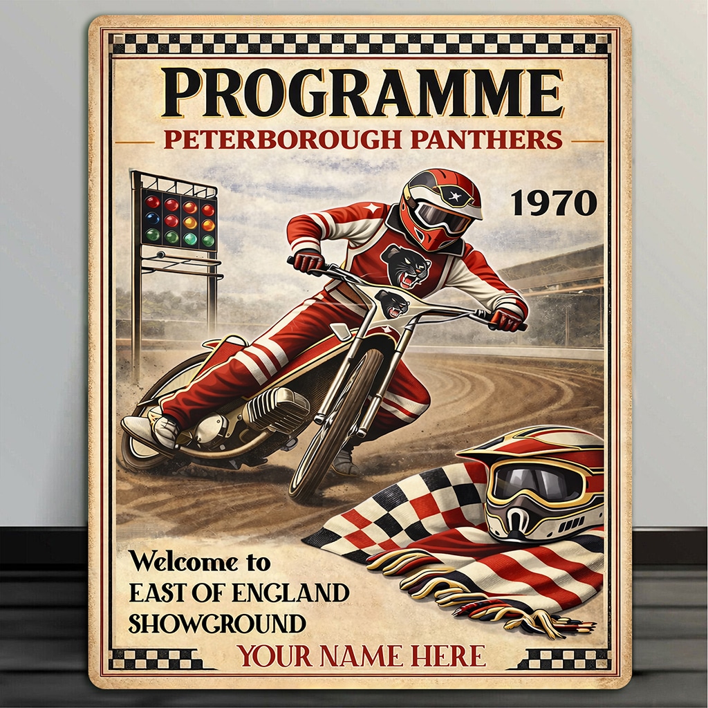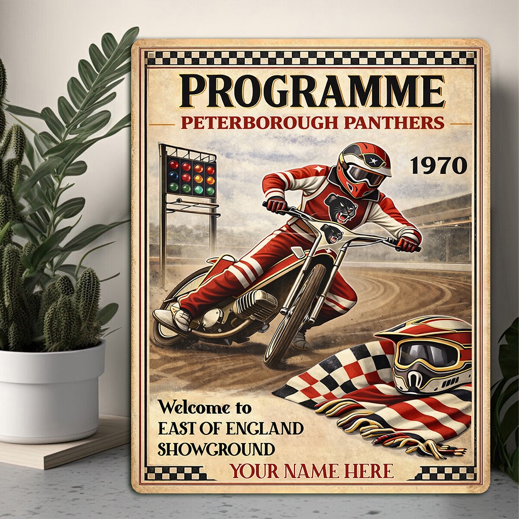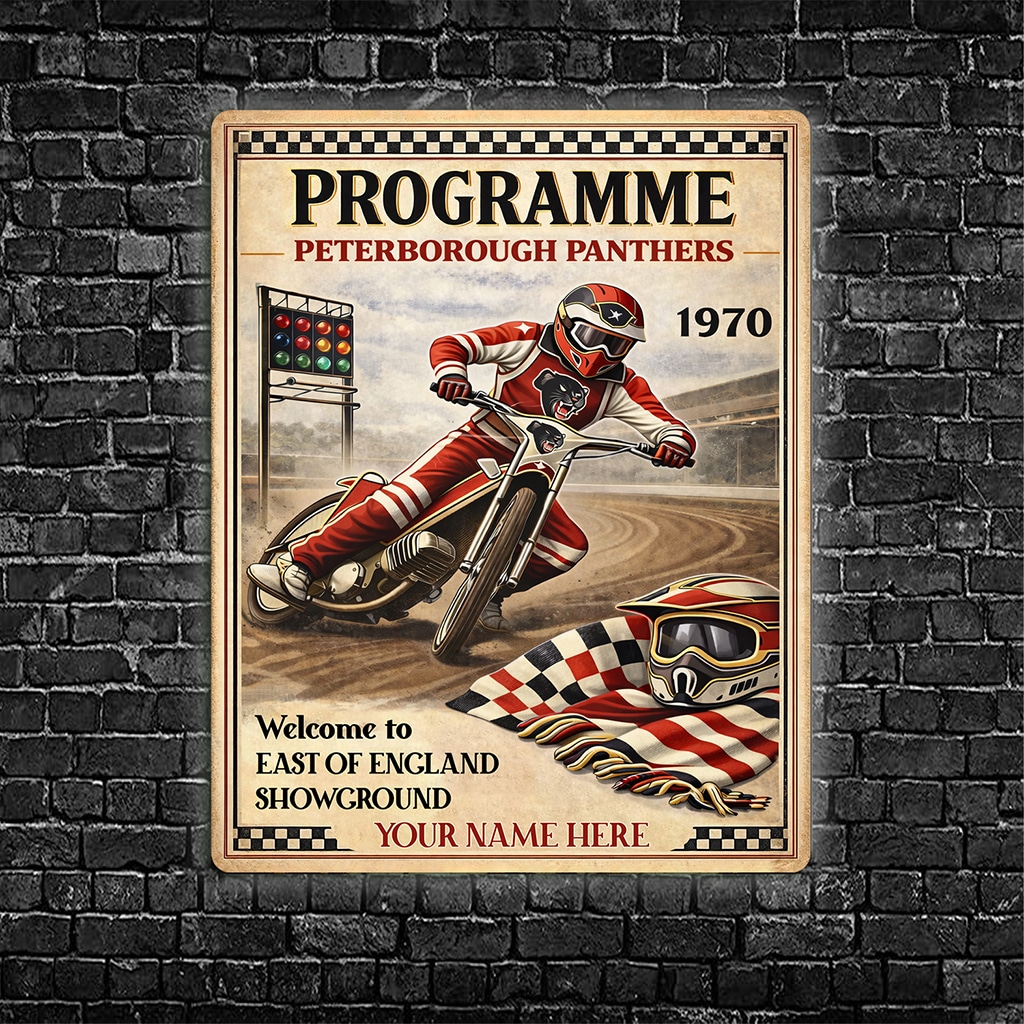 Personalised Peterborough Panthers Speedway Metal Wall Sign is the perfect gift for any Speed Way fan.