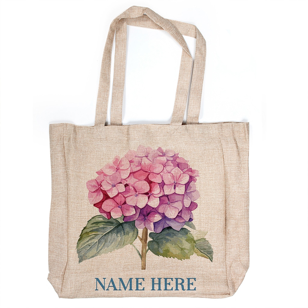 Personalised Pink Hygrangea Shopping Bag Flower Reusable Tote Shopper Handbag, the perfect birthday or Mother’s day gift for any shopper. The pretty design, which is durable, eco friendly, reuseable, lightweight and packable is the ideal present for any women. The water colour floral design is cute and practical and personalising with a name makes the gift even more special.