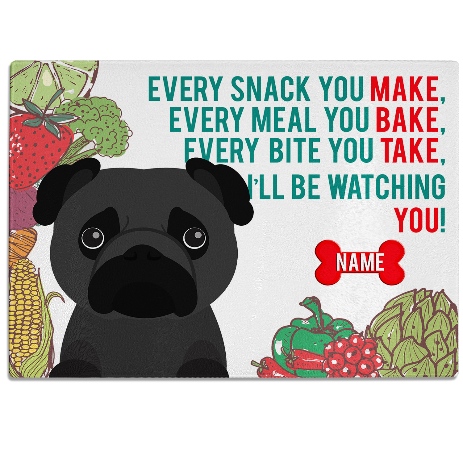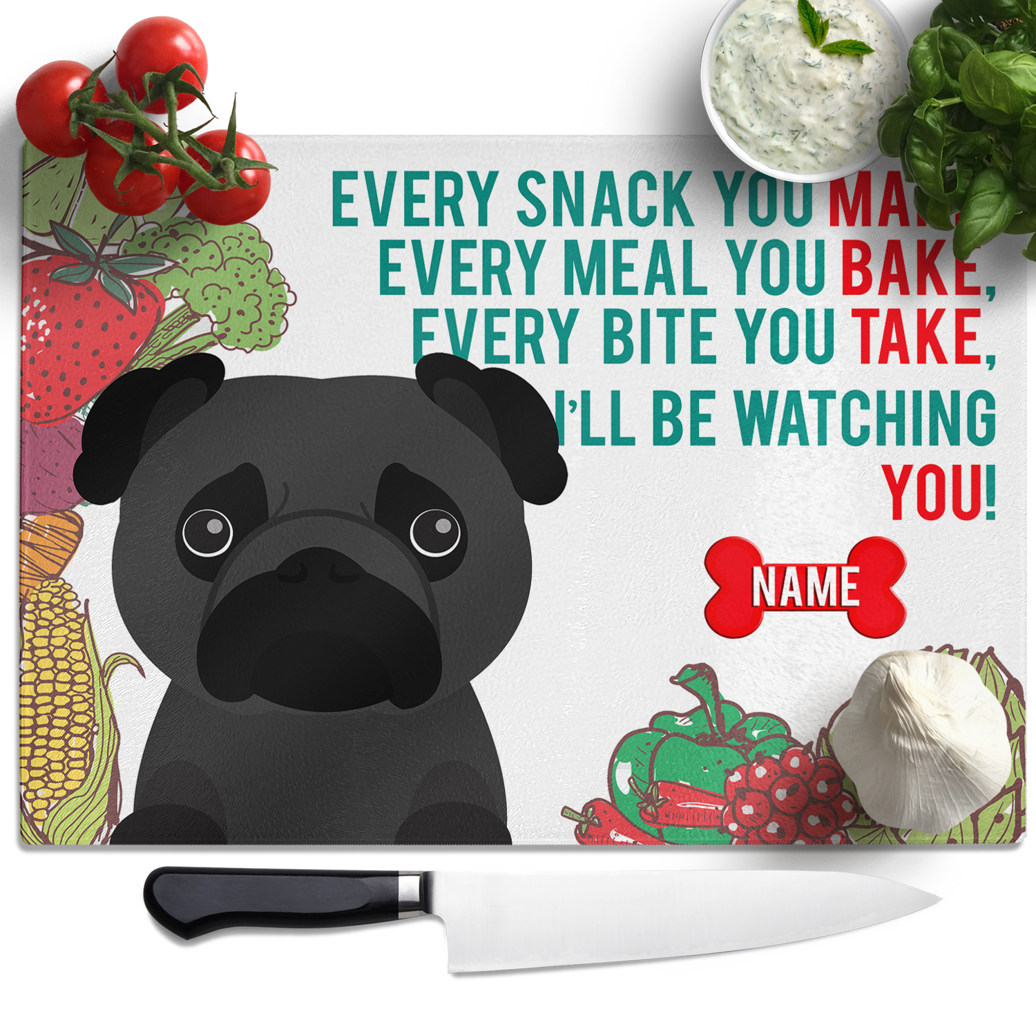 Personalised Pug Chopping Board KCB37A