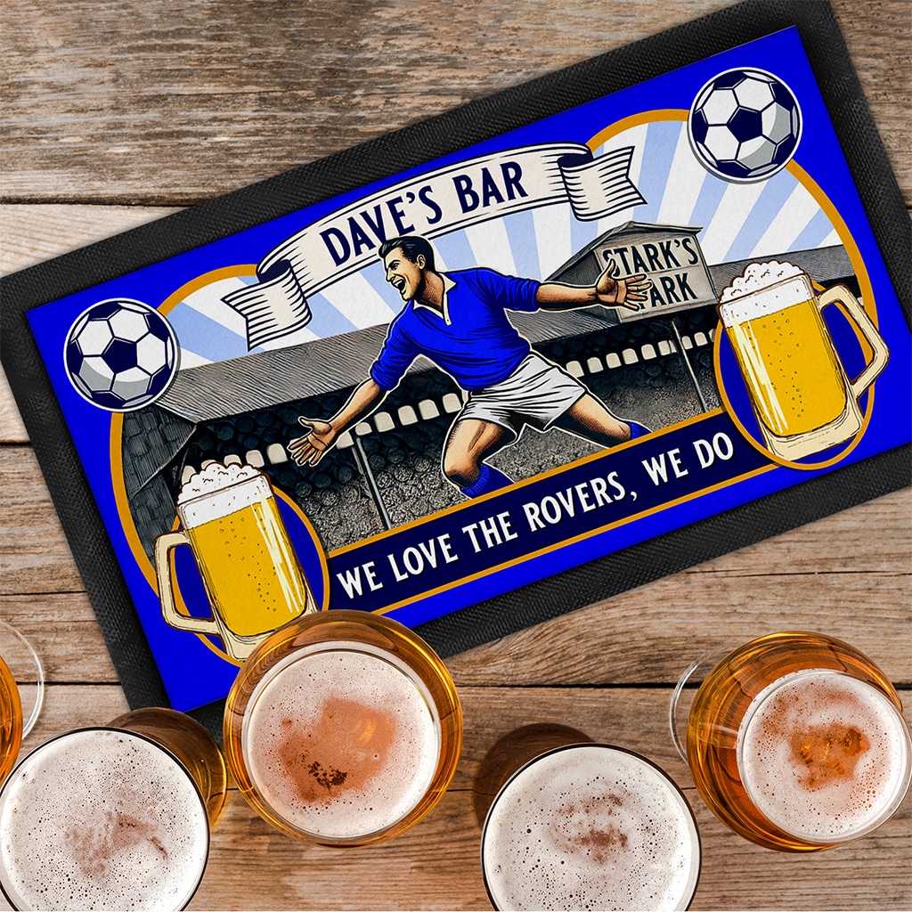 This Personalised Raith Bar Runner Football Beer Mat is the perfect vintage nostalgic gift for any football fan. The retro stadium design will look great in any pub, bar, man cave, restaurant, café or home kitchen.