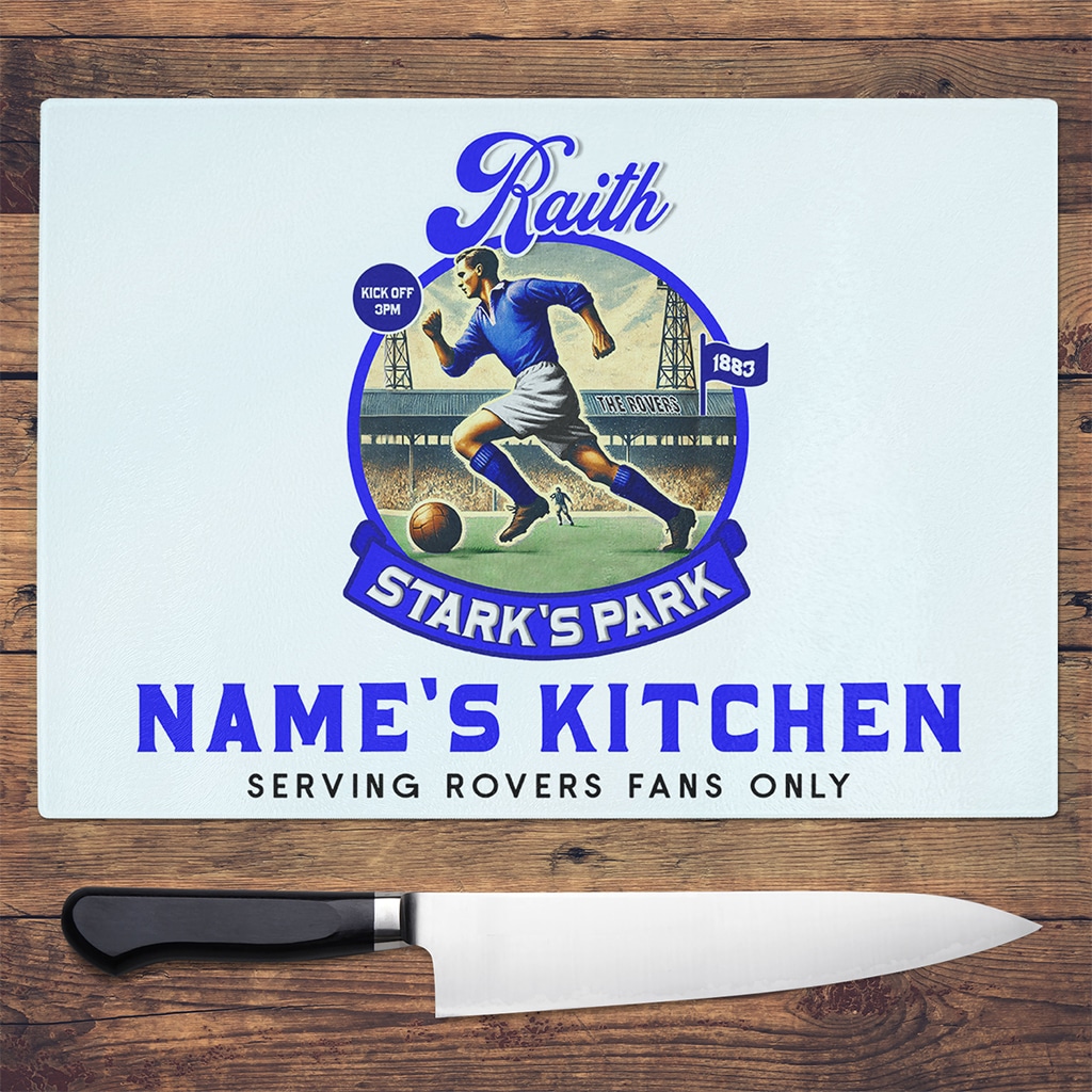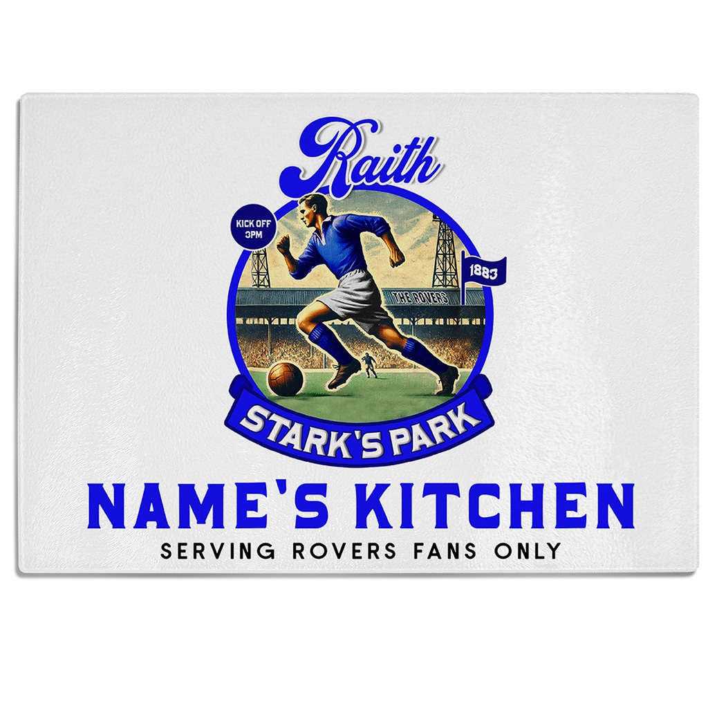 Personalised Raith Vintage Nostalgia Football Chopping Board Glass Worktop Saver, the Perfect the Perfect Football Team Fan Gift!
