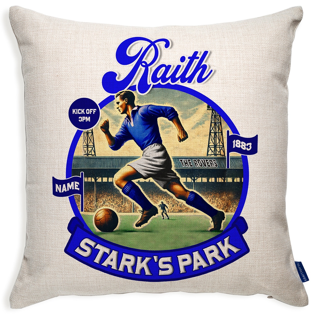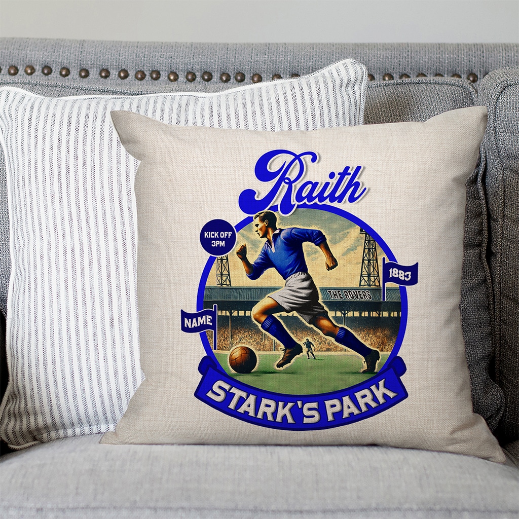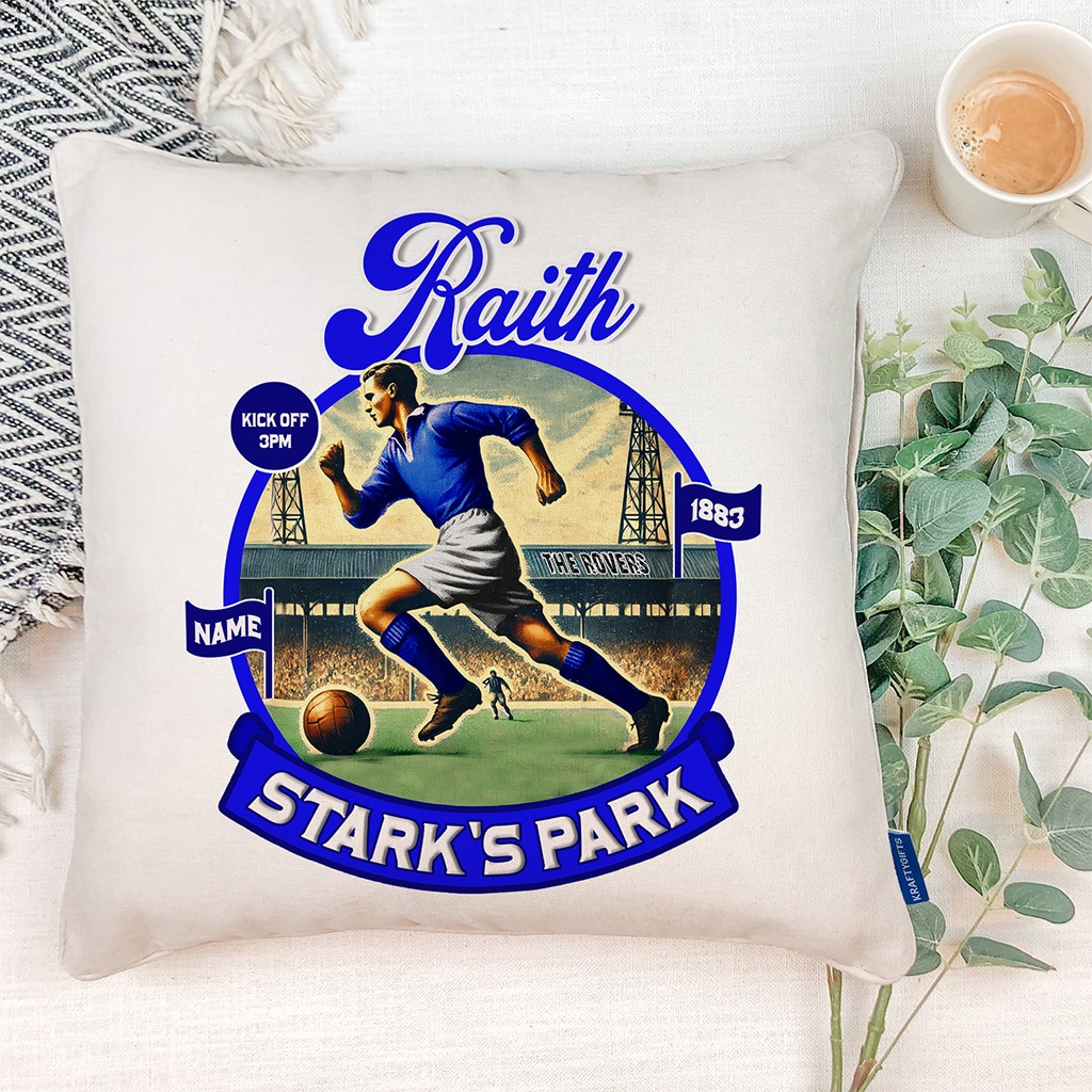 Personalised Raith Vintage Nostalgia Football Cushion Cover, the Perfect Vintage Football Team Fan Gift!