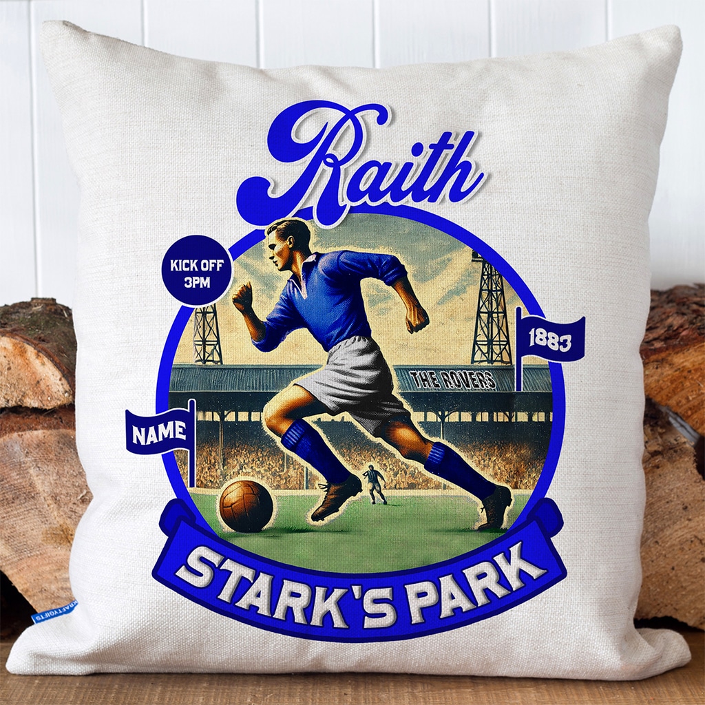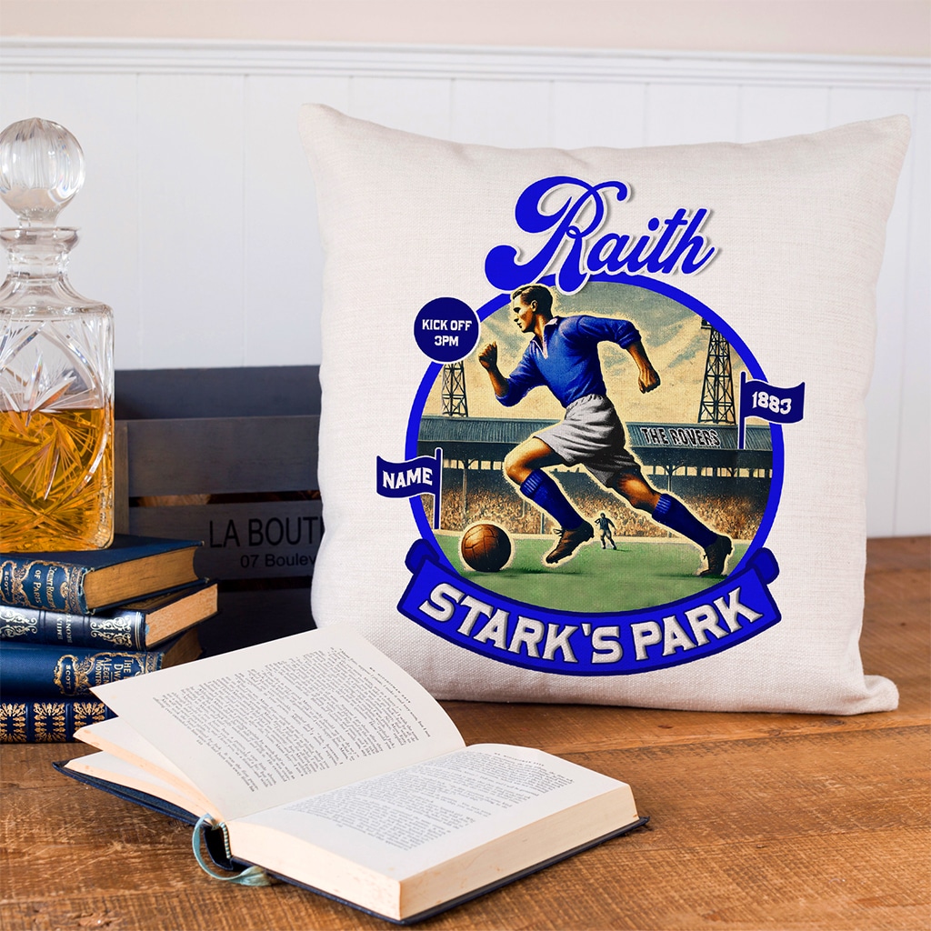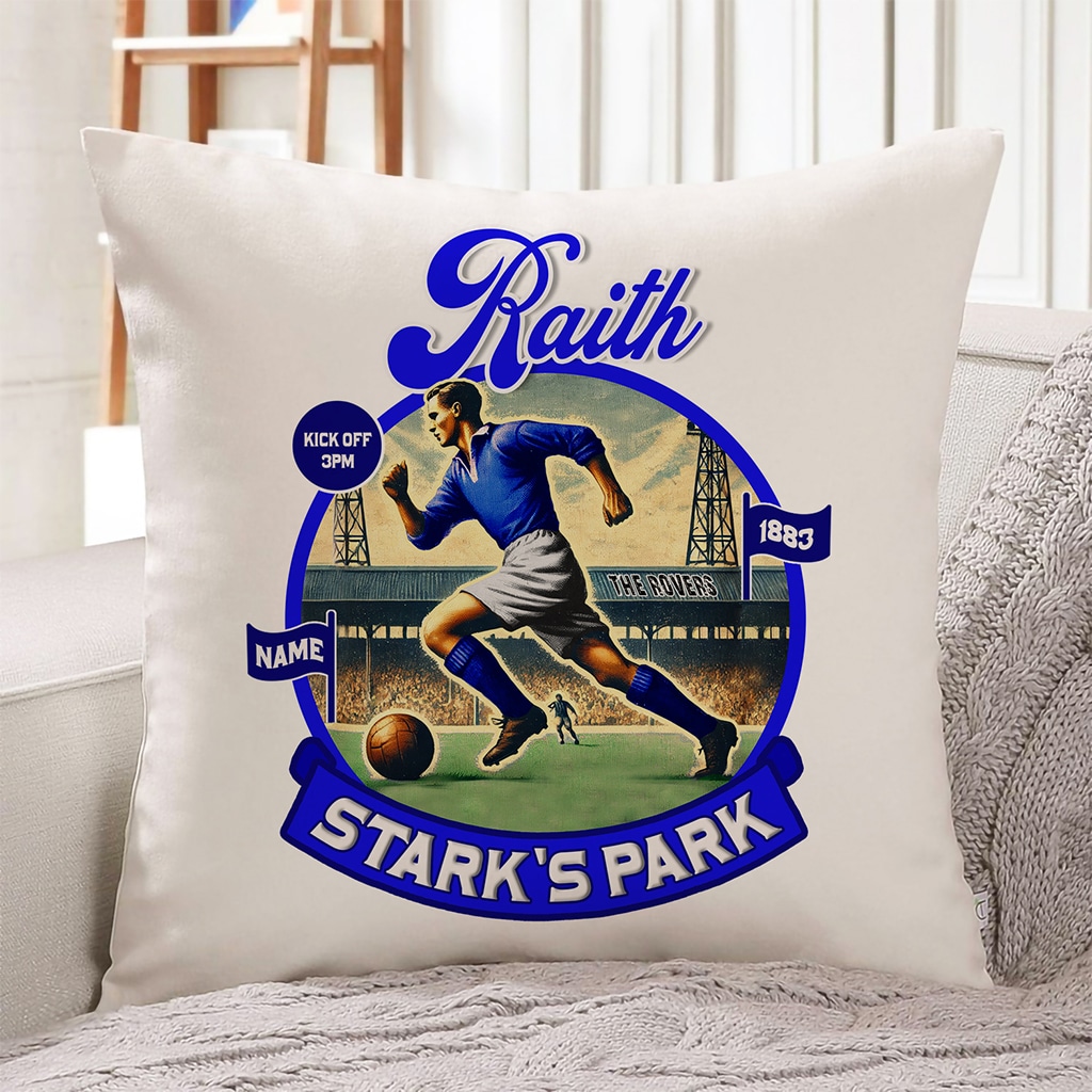 Personalised Raith Vintage Nostalgia Football Cushion Cover, the Perfect Vintage Football Team Fan Gift!