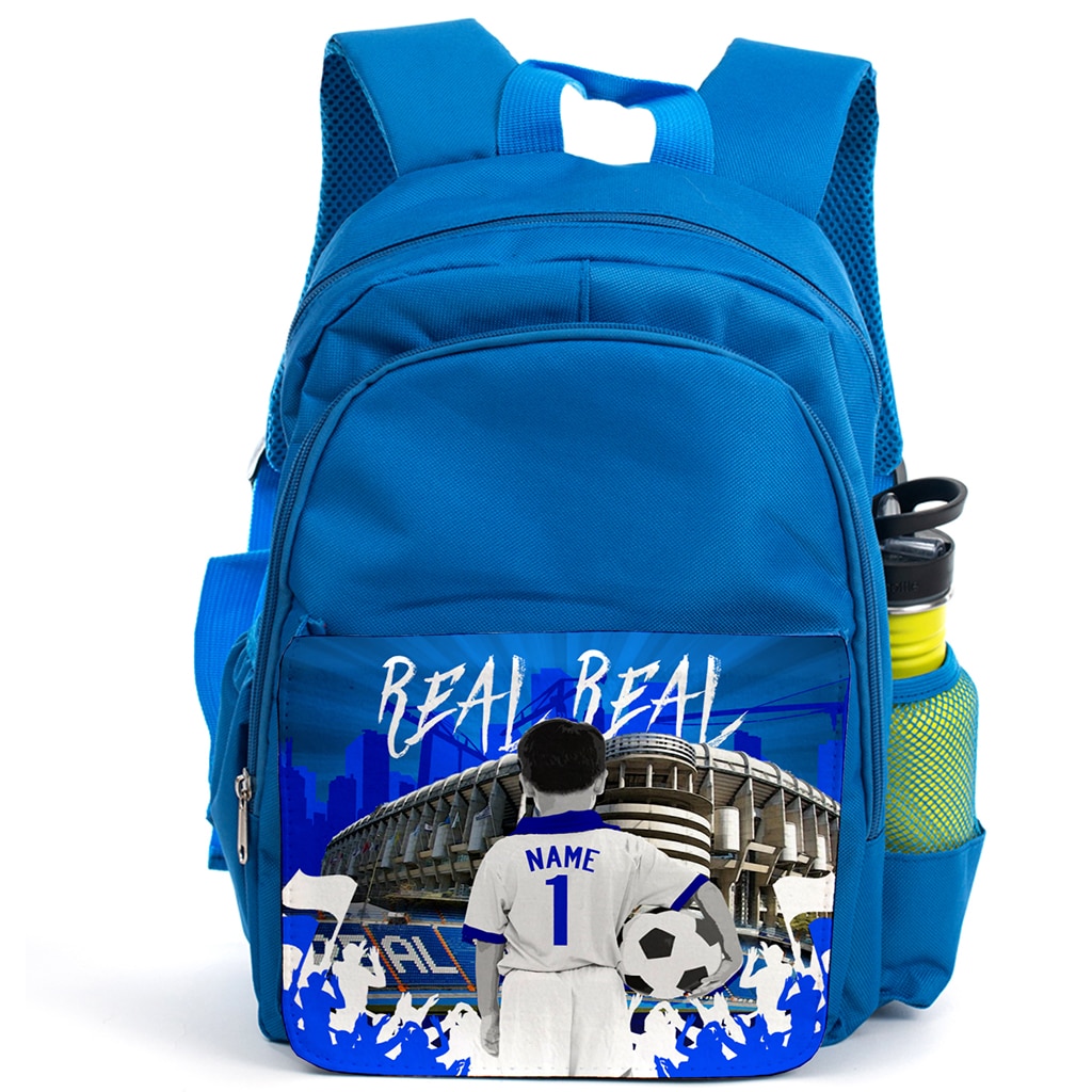 Personalised Real Madrid Kids Football Blue Backpack CF49