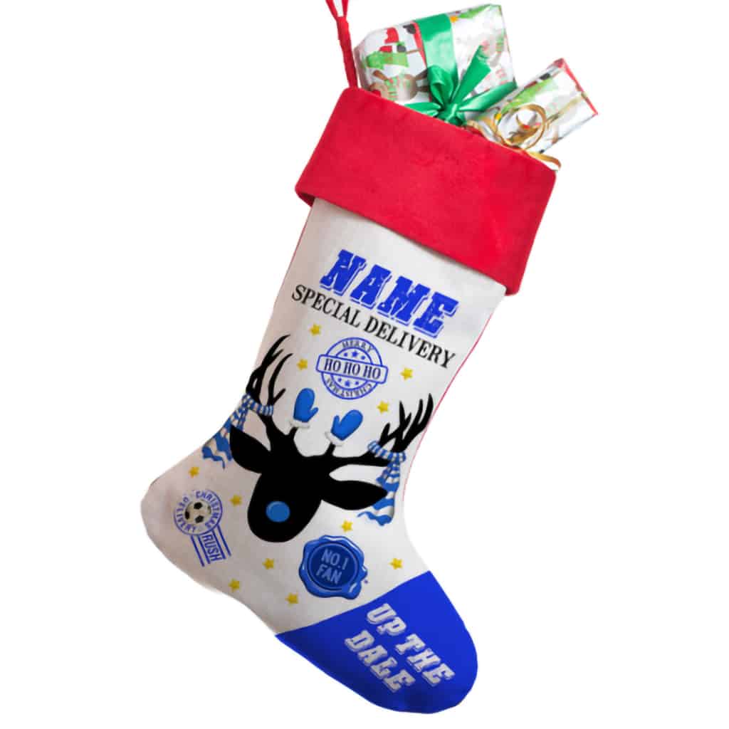 With a festive football reindeer in team colours, this stocking makes great seasonal decor for the home and is also perfect for holding treats and stocking filler presents!