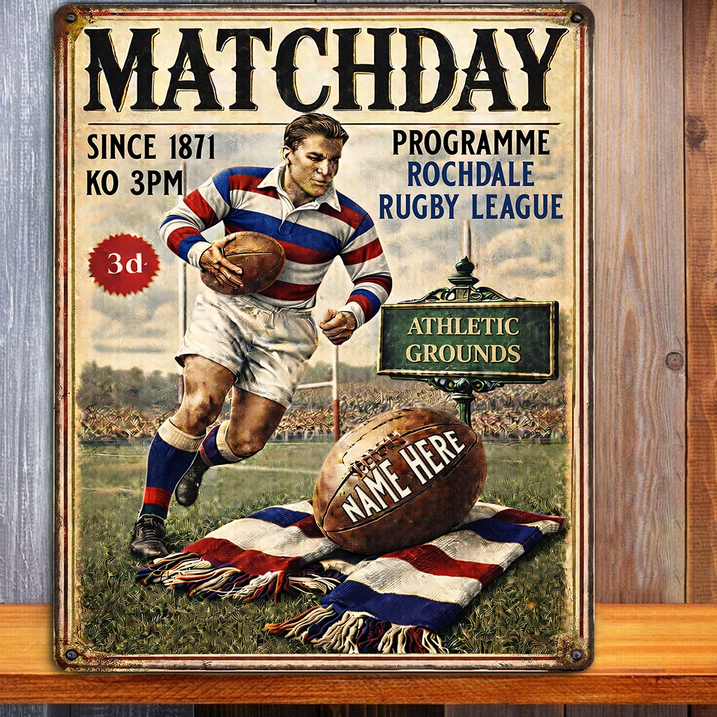 Personalised Rochdale Rugby League Metal Wall Sign is the perfect gift for any rugby fan.