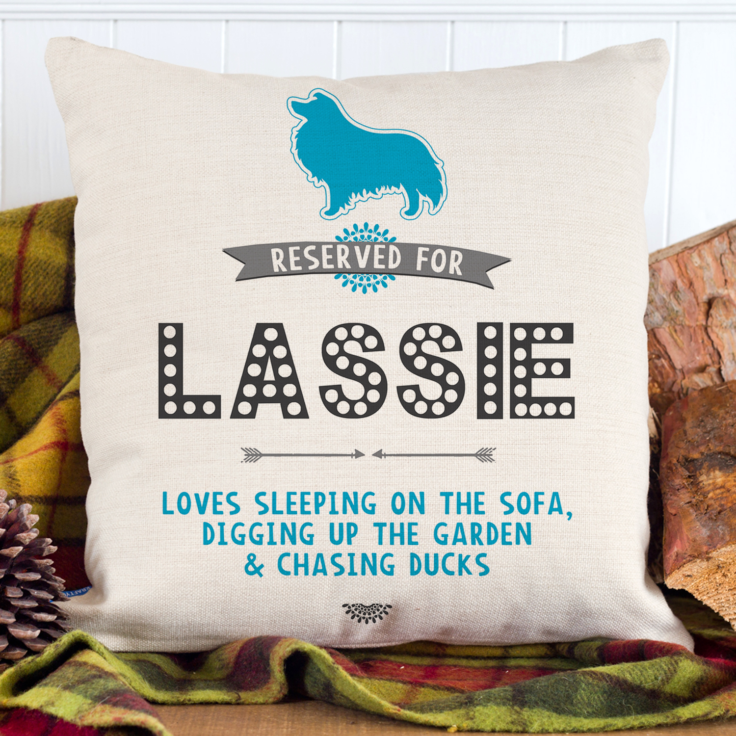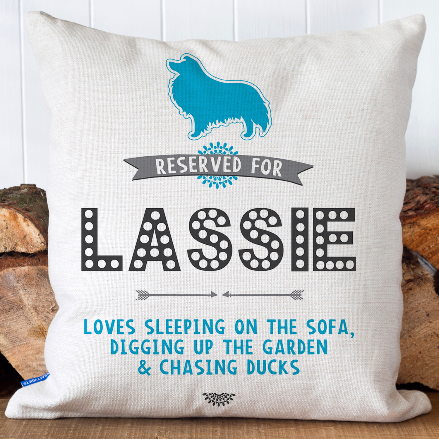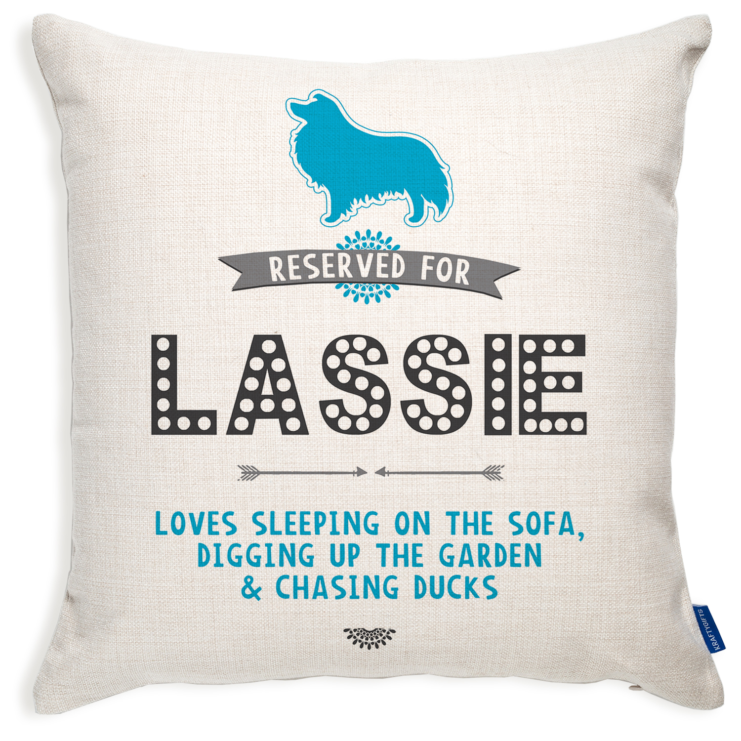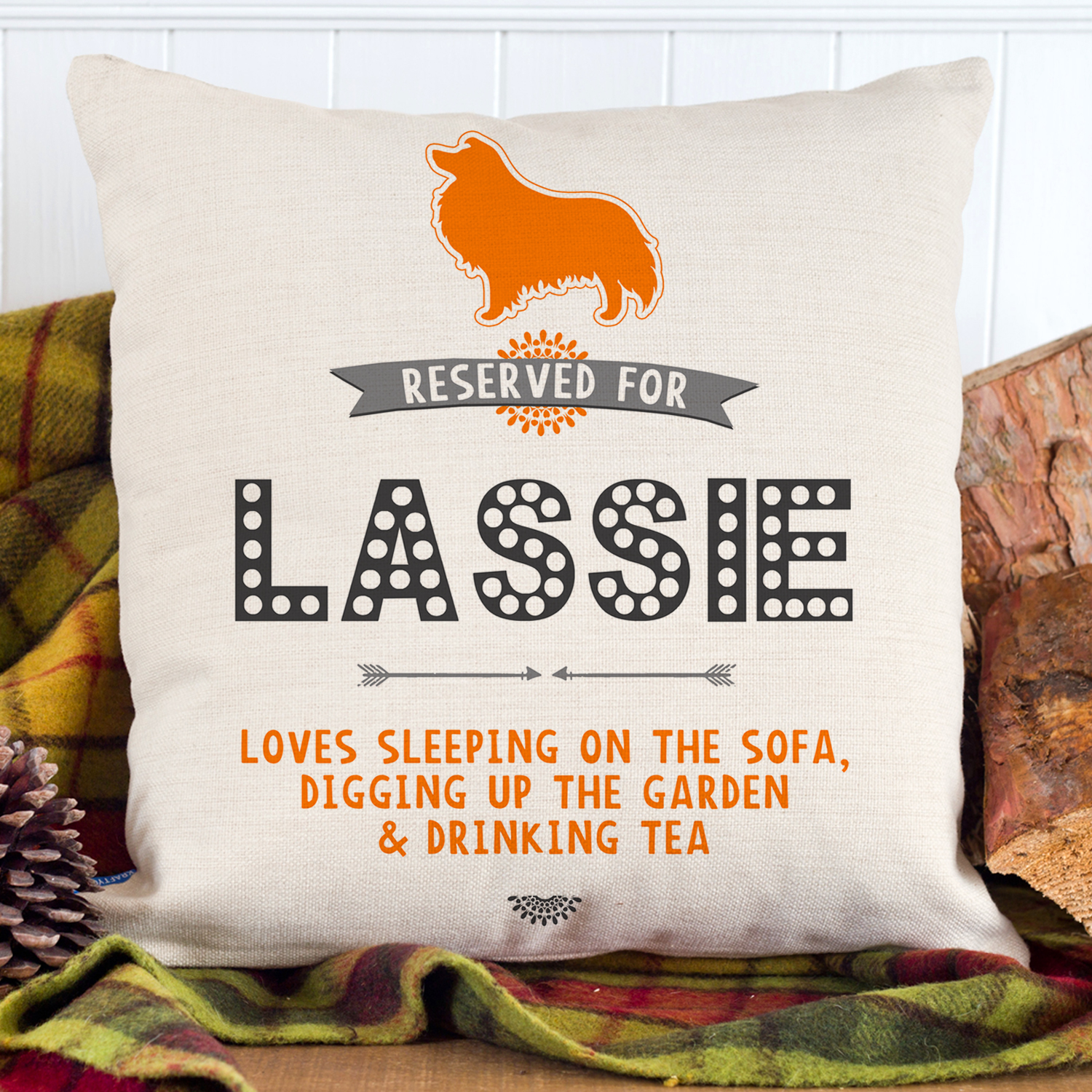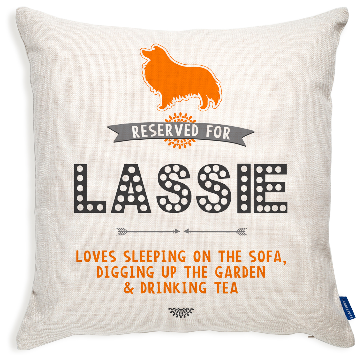 ★ The cushion cover is personalised with your DOG’S NAME and WHATEVER YOUR DOG LIKES TO DO / EAT!