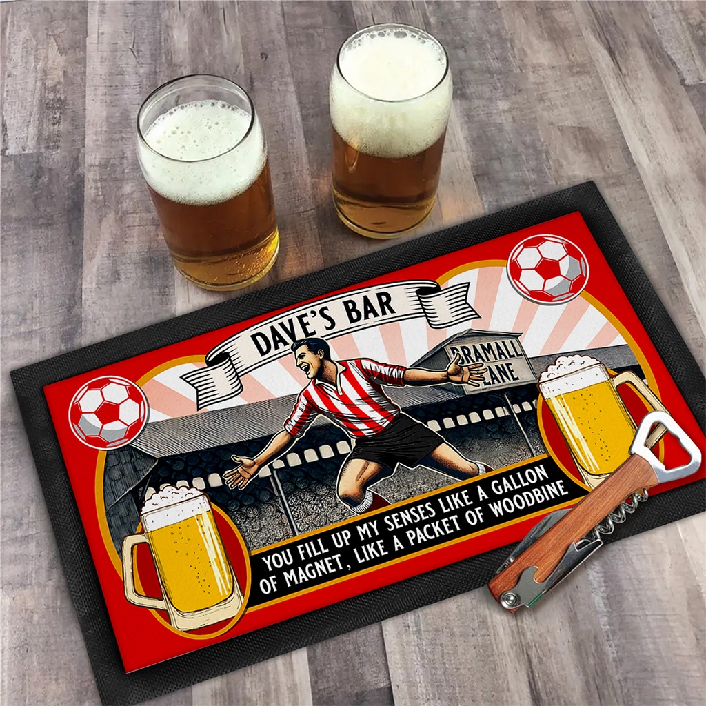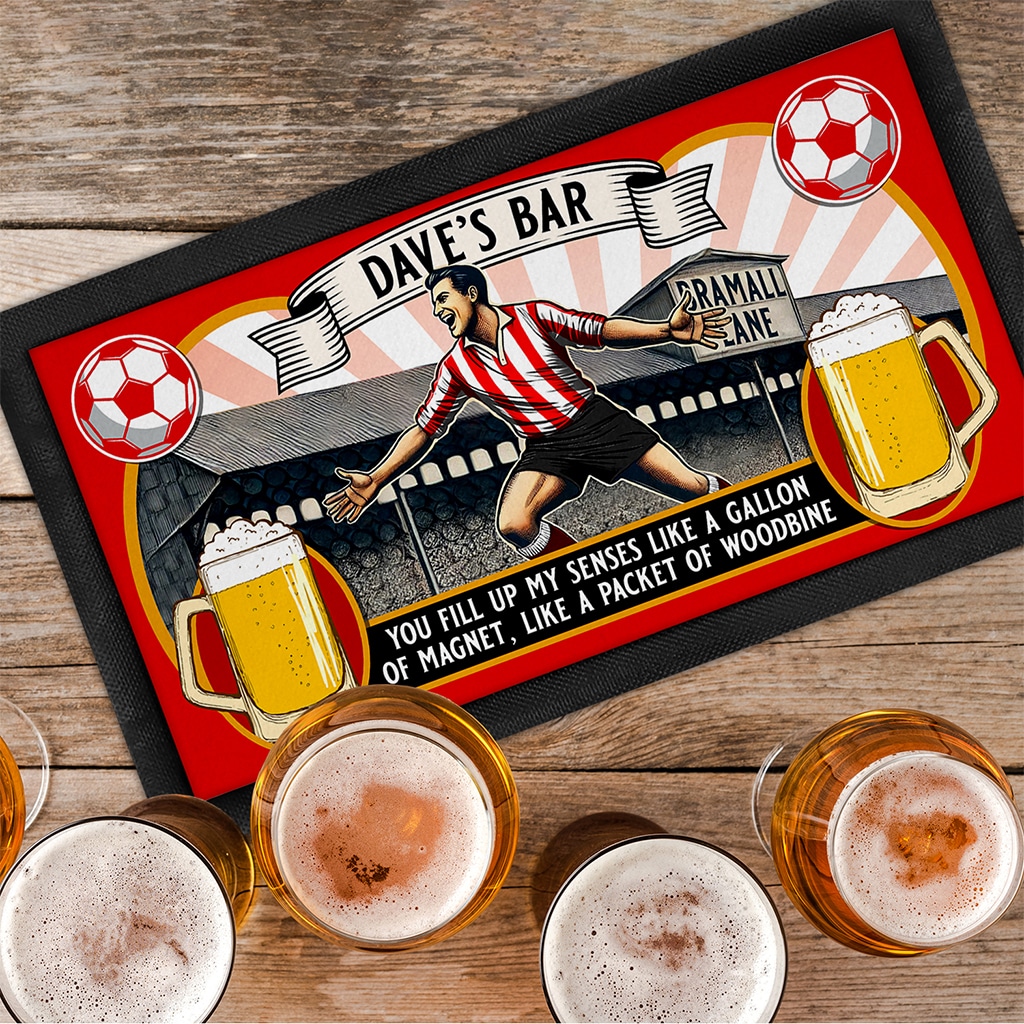 This Personalised Sheffield United Bar Runner Football Beer Mat is the perfect vintage nostalgic gift for any football fan. The retro stadium design will look great in any pub, bar, man cave, restaurant, café or home kitchen.