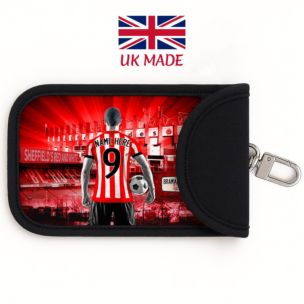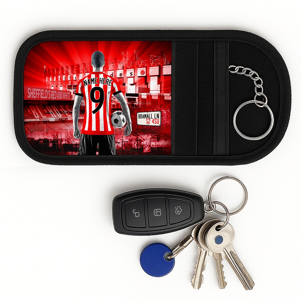 Personalised Sheffield Utd Football Faraday Key Pouch Signal Blocker Case – the perfect gift for keeping car keys safe.