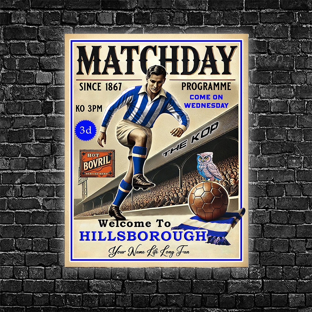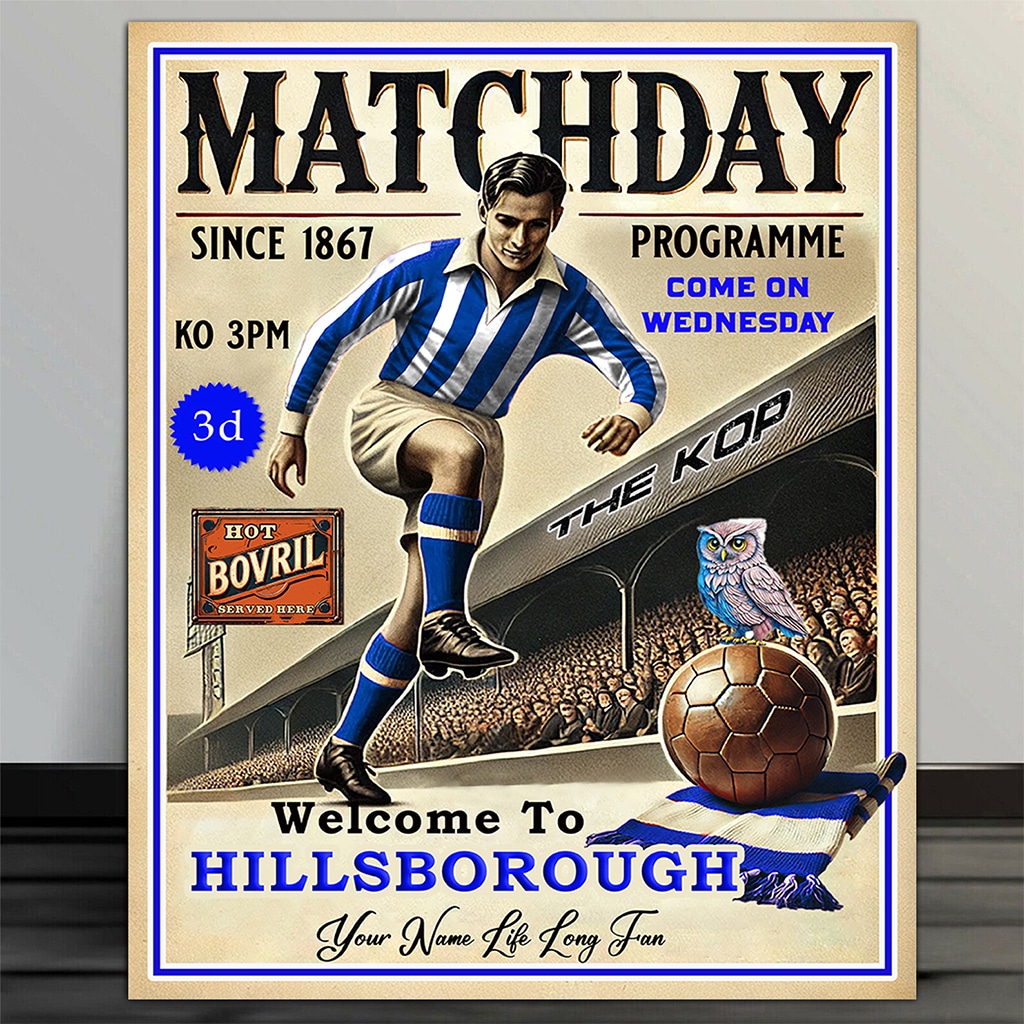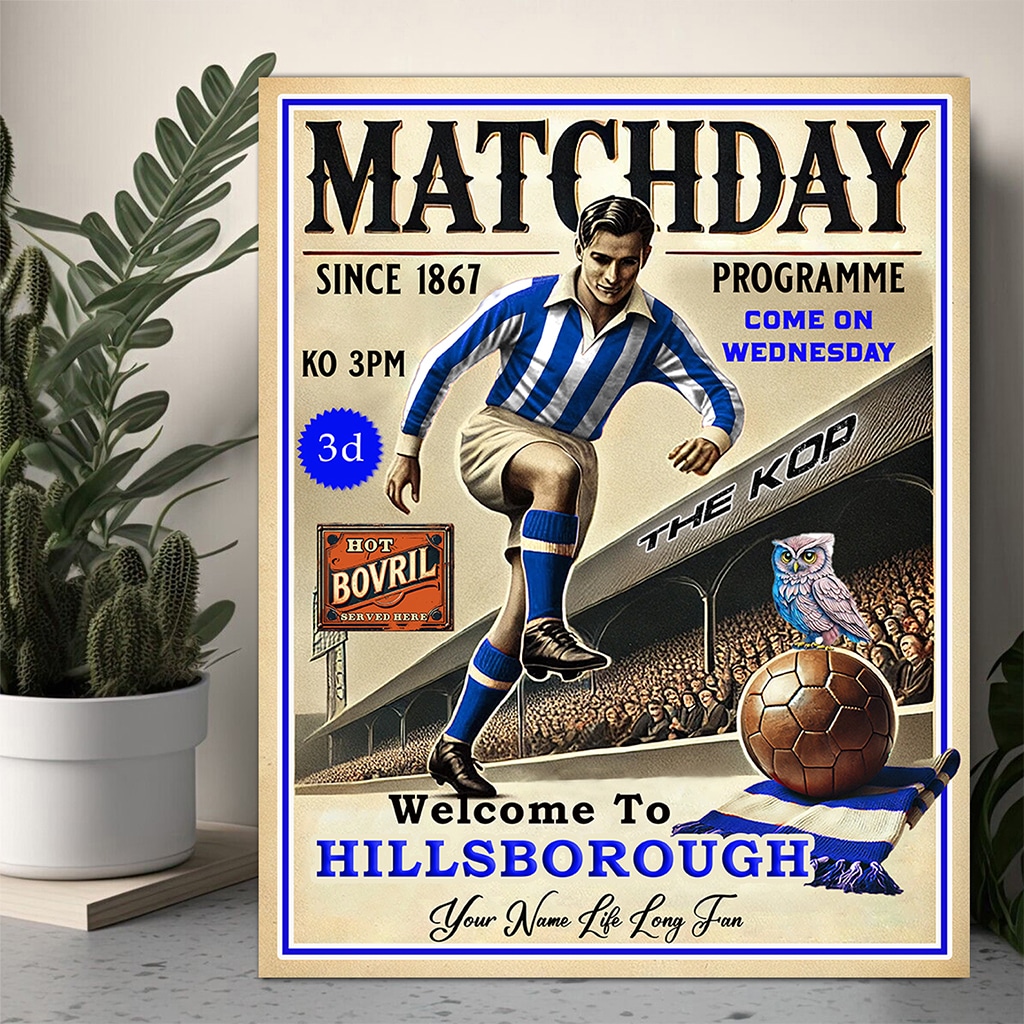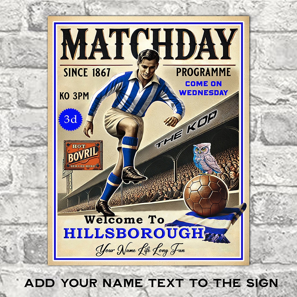 This Personalised Sheffield Wednesday Football Programme Retro Metal Sign is the perfect vintage football fan gift.