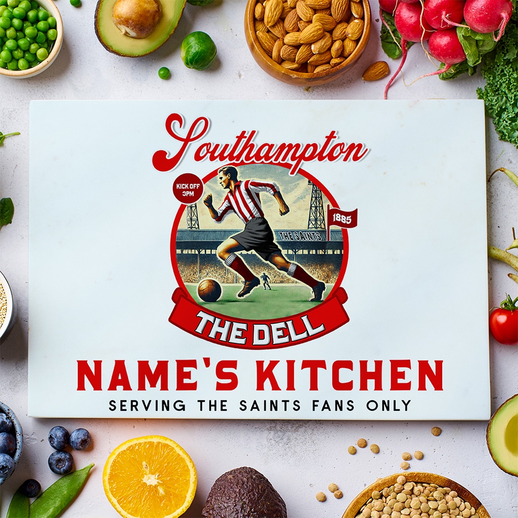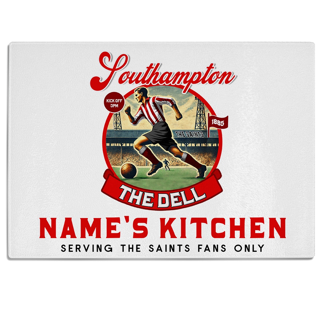 Personalised Southampton Vintage Nostalgia Football Chopping Board Glass Worktop Saver, the Perfect the Perfect Football Team Fan Gift!