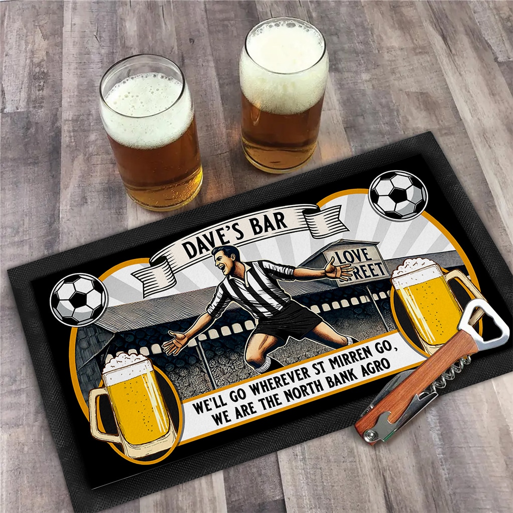 This Personalised St Mirren Bar Runner Football Beer Mat is the perfect vintage nostalgic gift for any football fan. The retro stadium design will look great in any pub, bar, man cave, restaurant, café or home kitchen.