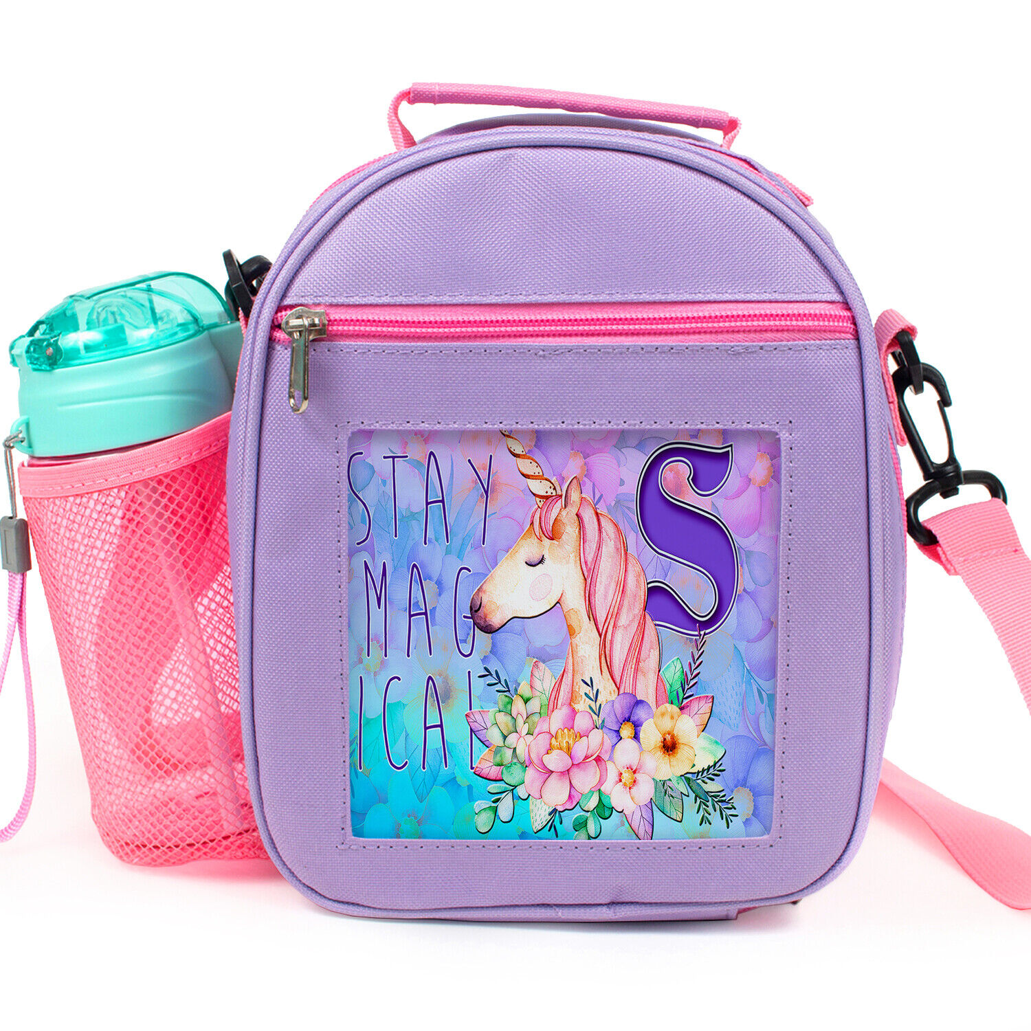 Personalised Unicorn Purple Kids Girls School Lunch Bag KS31