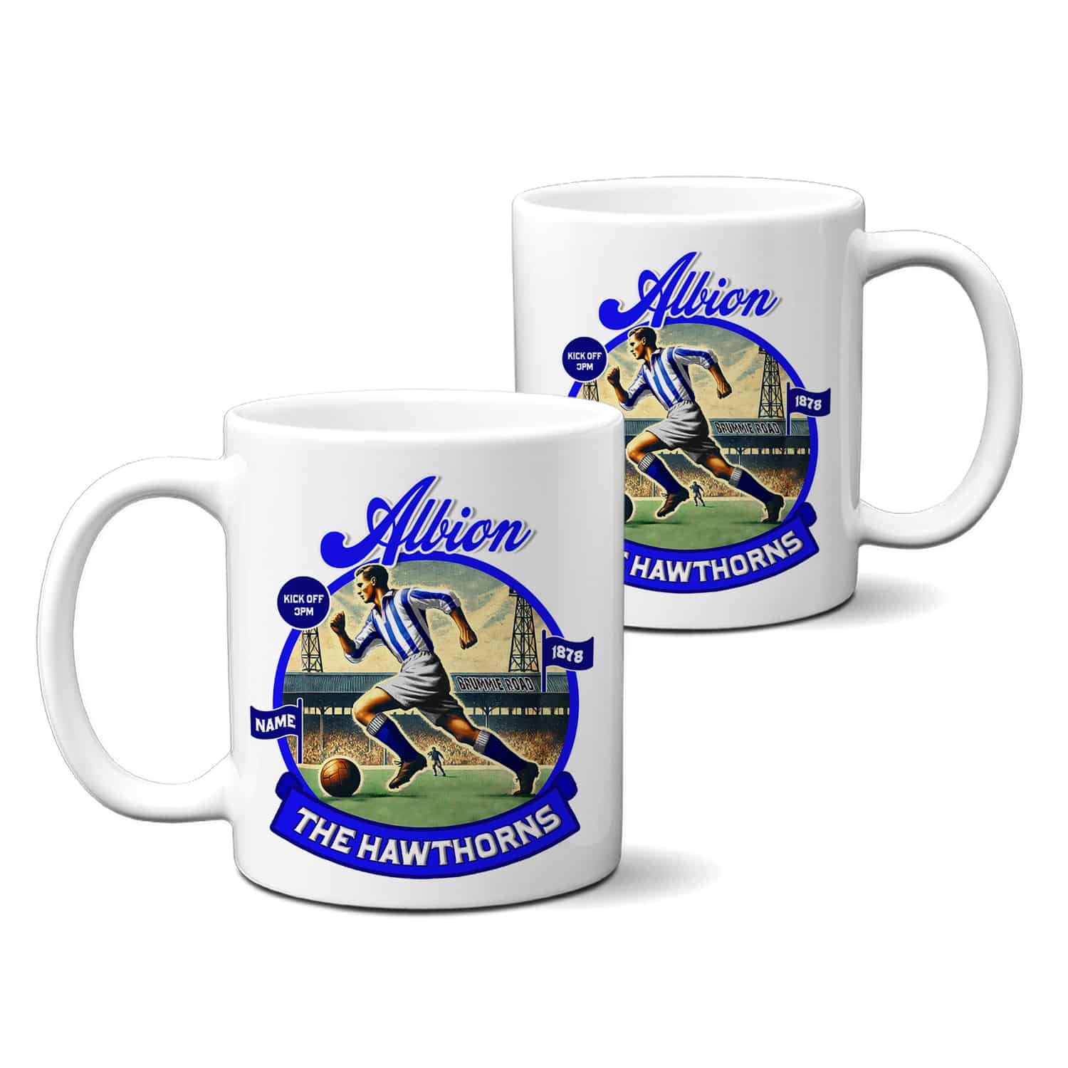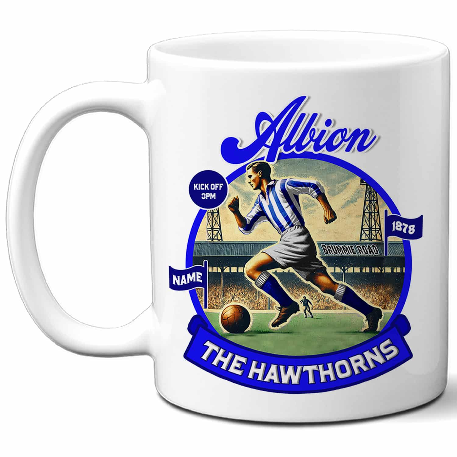 Personalised West Brom Football Nostalgia Mug, the perfect gift for any football fan. These custom tea / coffee cups are ideal birthday gifts and Christmas stocking fillers. Any name can be printed on to the mug, making it a beautiful keepsake for any retro football fan. A great gift for retirement.