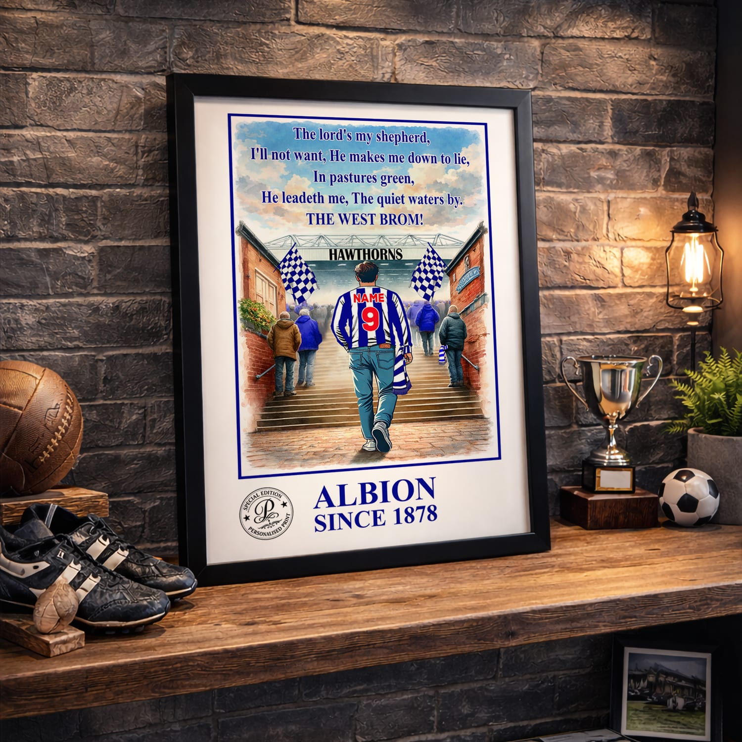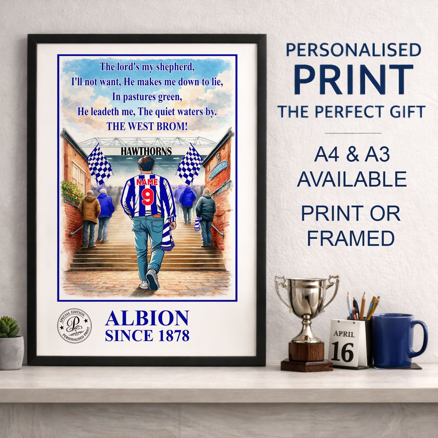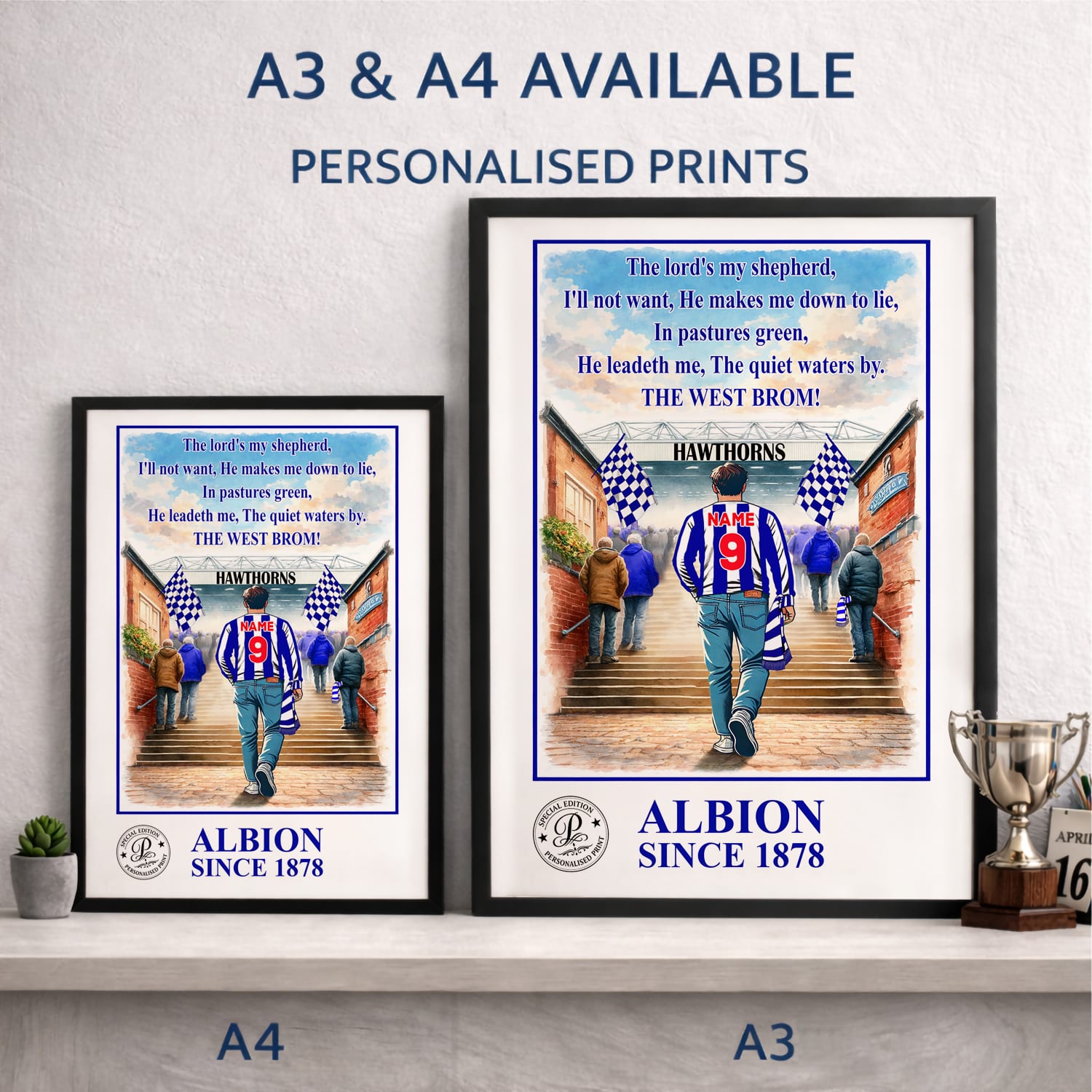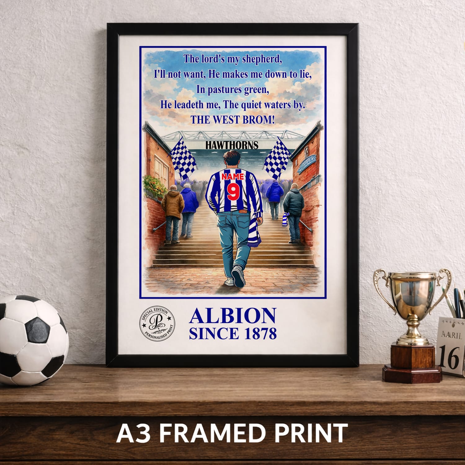 Personalised West Brom Football Stadium Print A3 A4 Framed Unframed Wall Art Gift.
