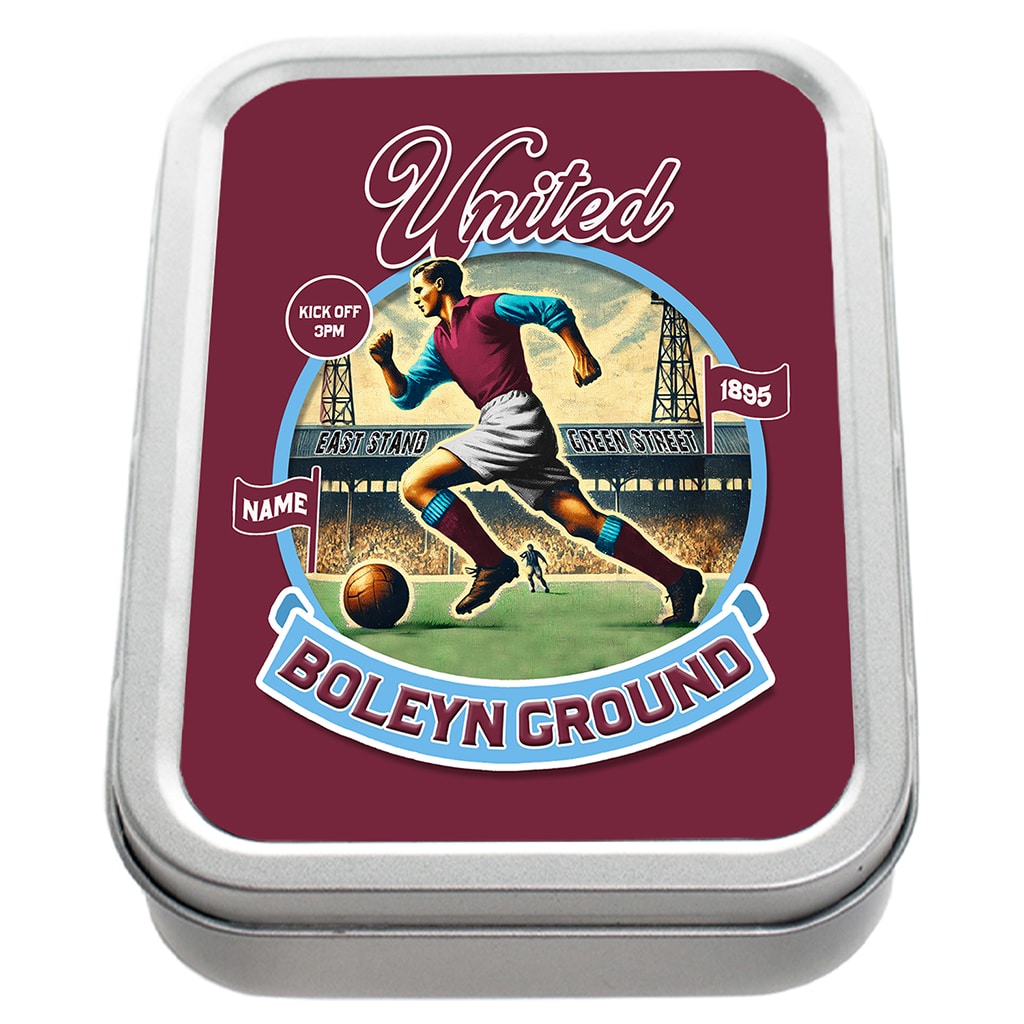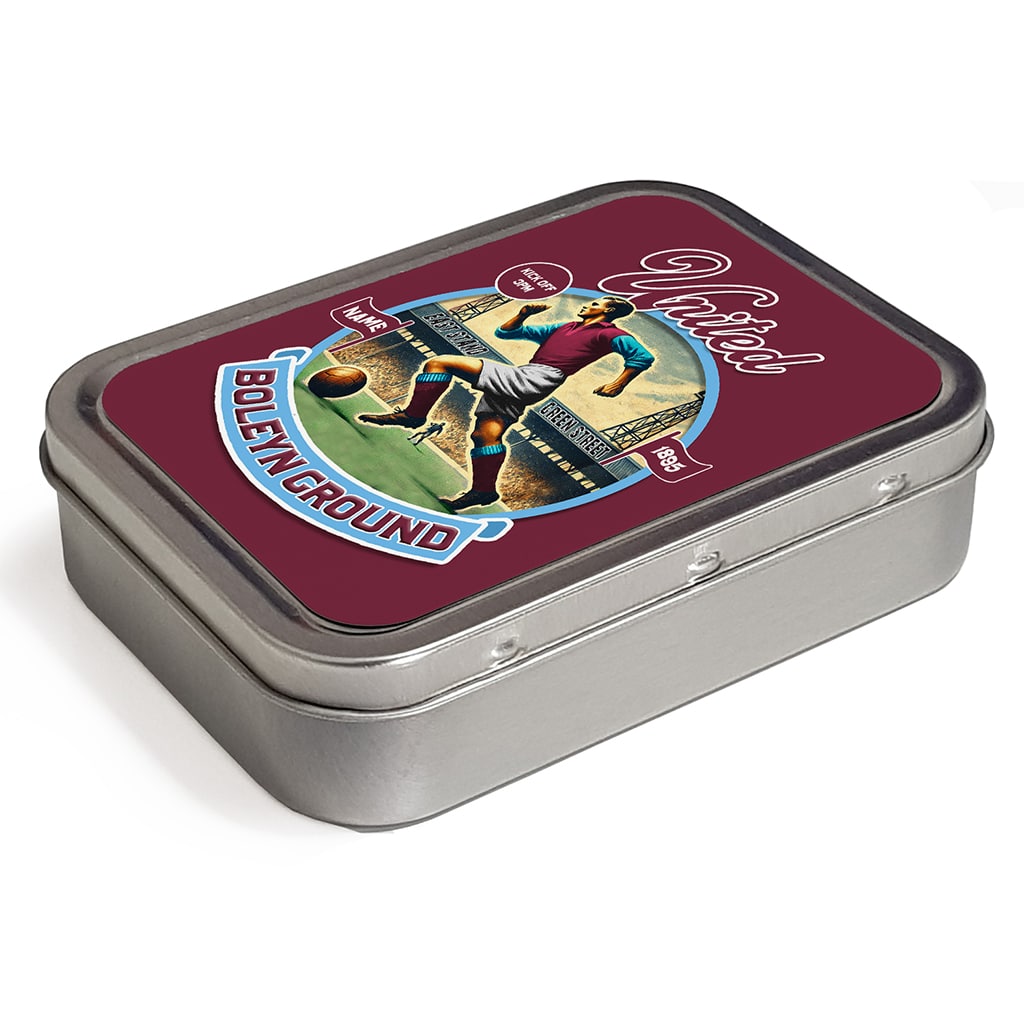 Personalised West Ham Football Nostalgia Tobacco Tin, the ideal gift for any smoker.