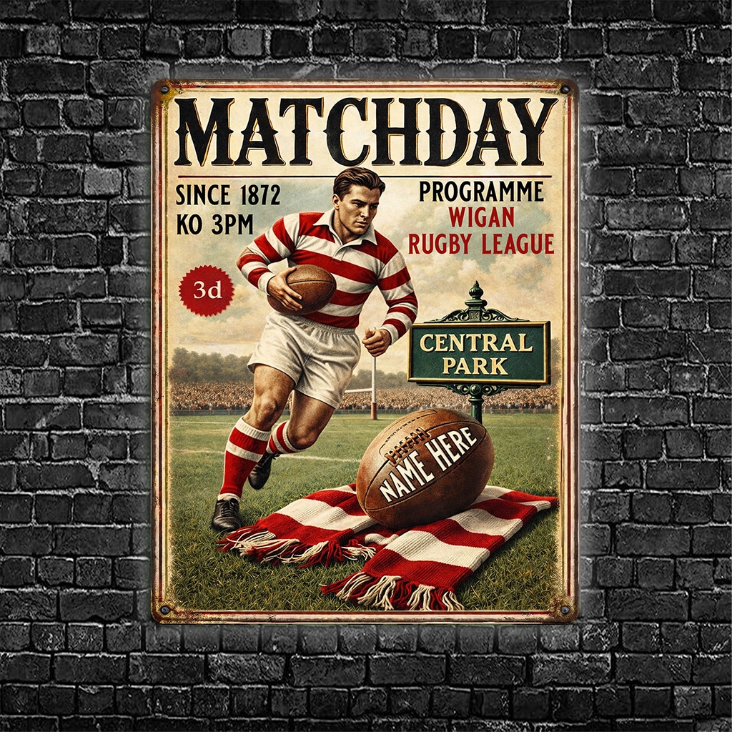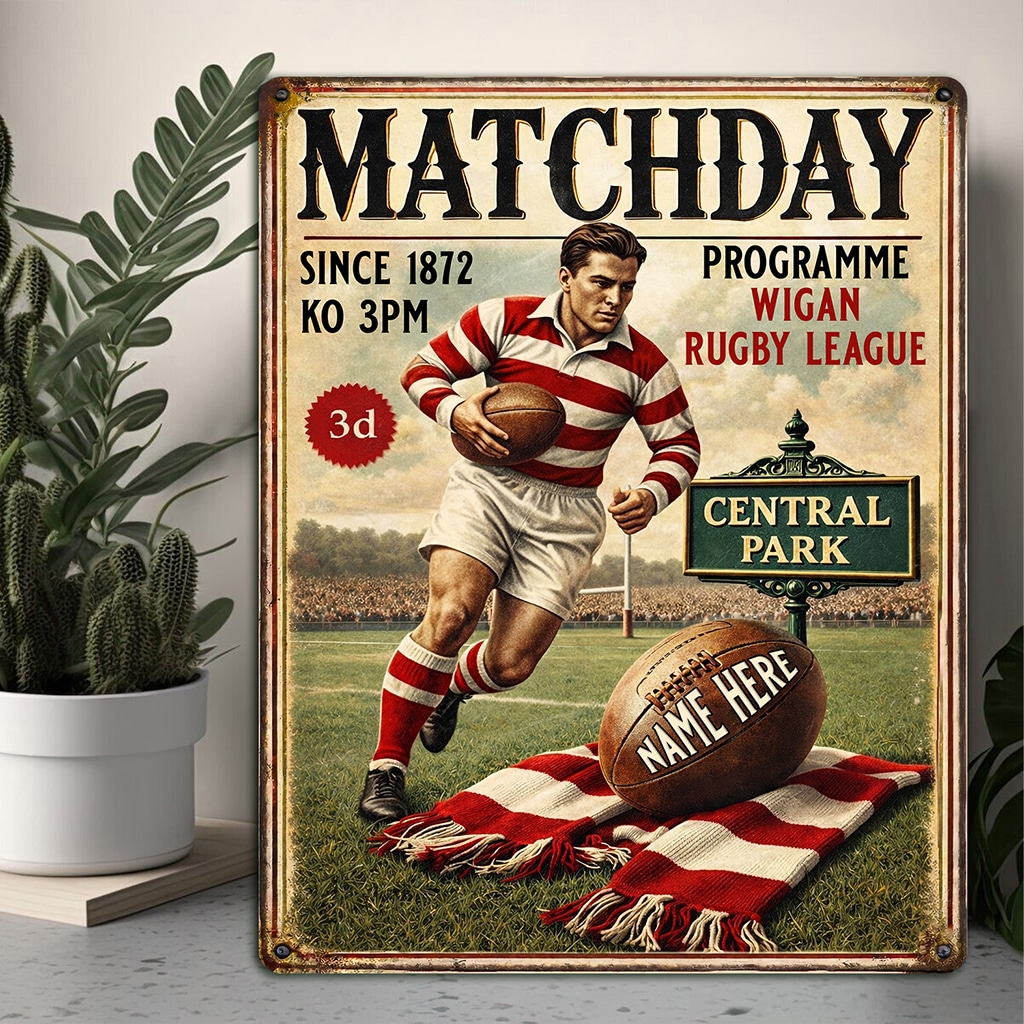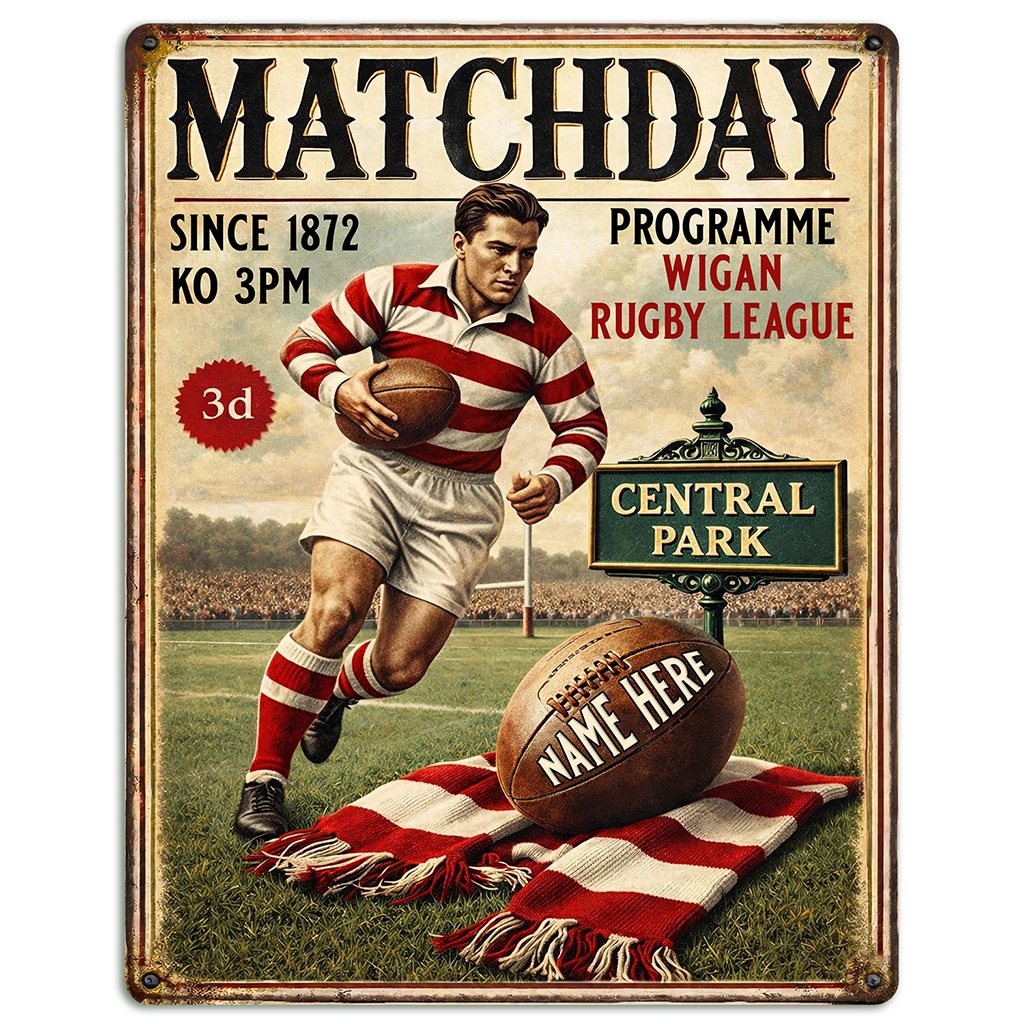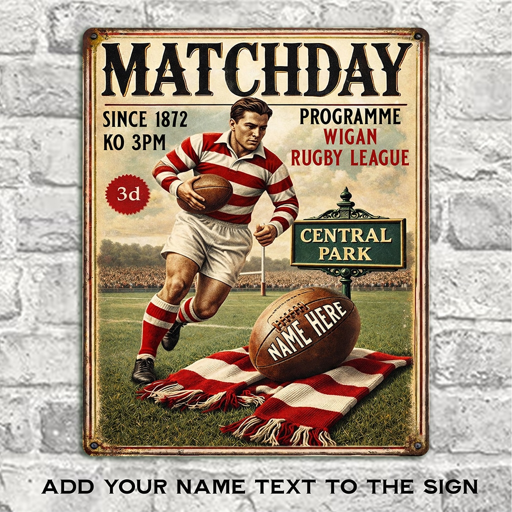 Personalised Wigan Rugby League Metal Wall Sign is the perfect gift for any rugby fan.