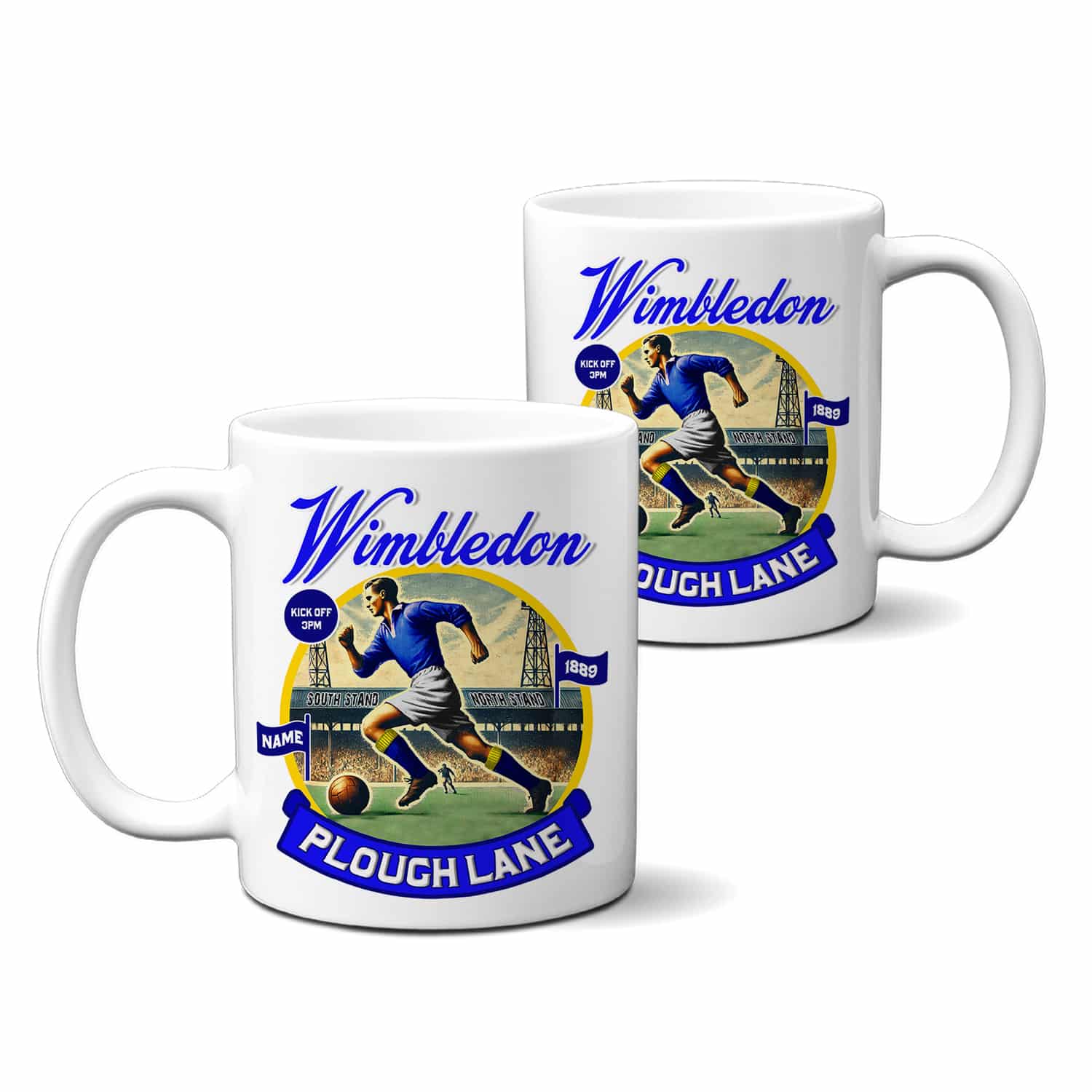 Personalised Wimbledon Football Nostalgia Mug, the perfect gift for any football fan. These custom tea / coffee cups are ideal birthday gifts and Christmas stocking fillers. Any name can be printed on to the mug, making it a beautiful keepsake for any retro football fan. A great gift for retirement.