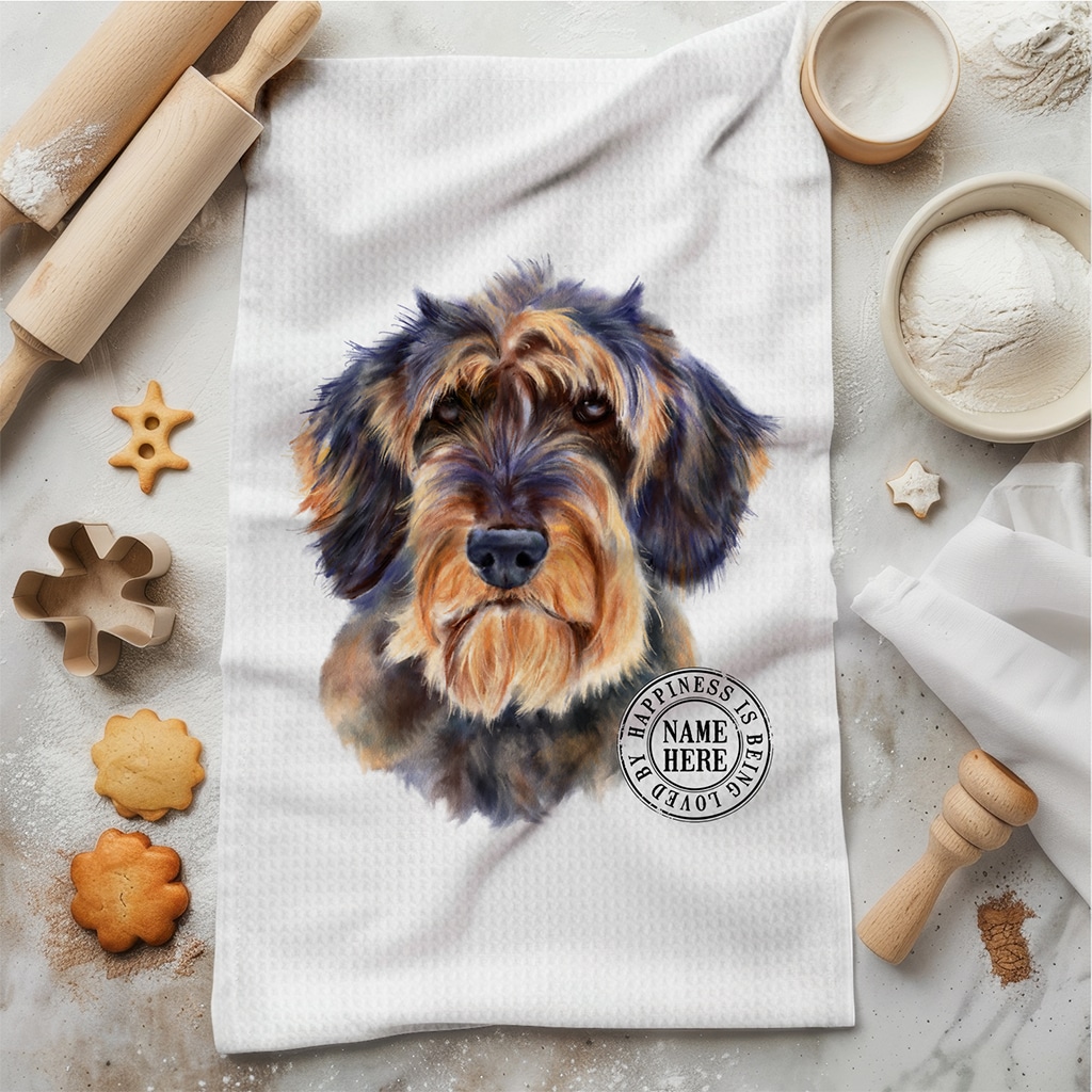 Personalised Wire Haired Dachshund Dog Kitchen Tea Towel KDC54