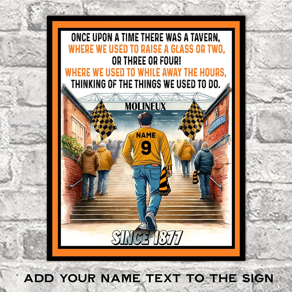 This Personalised Wolverhampton Wanderers Football Fan Watercolour Stadium Metal Sign is the perfect match day football fan gift.